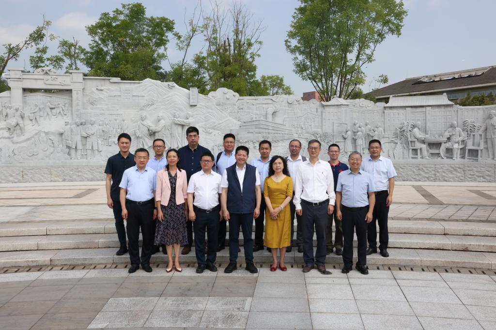 裘新一行参观了“弦歌西进——上医重医西迁精神主题展览”、西迁广场,瞻仰了西迁群雕和复建的抗战时期上医在歌乐山老校门。