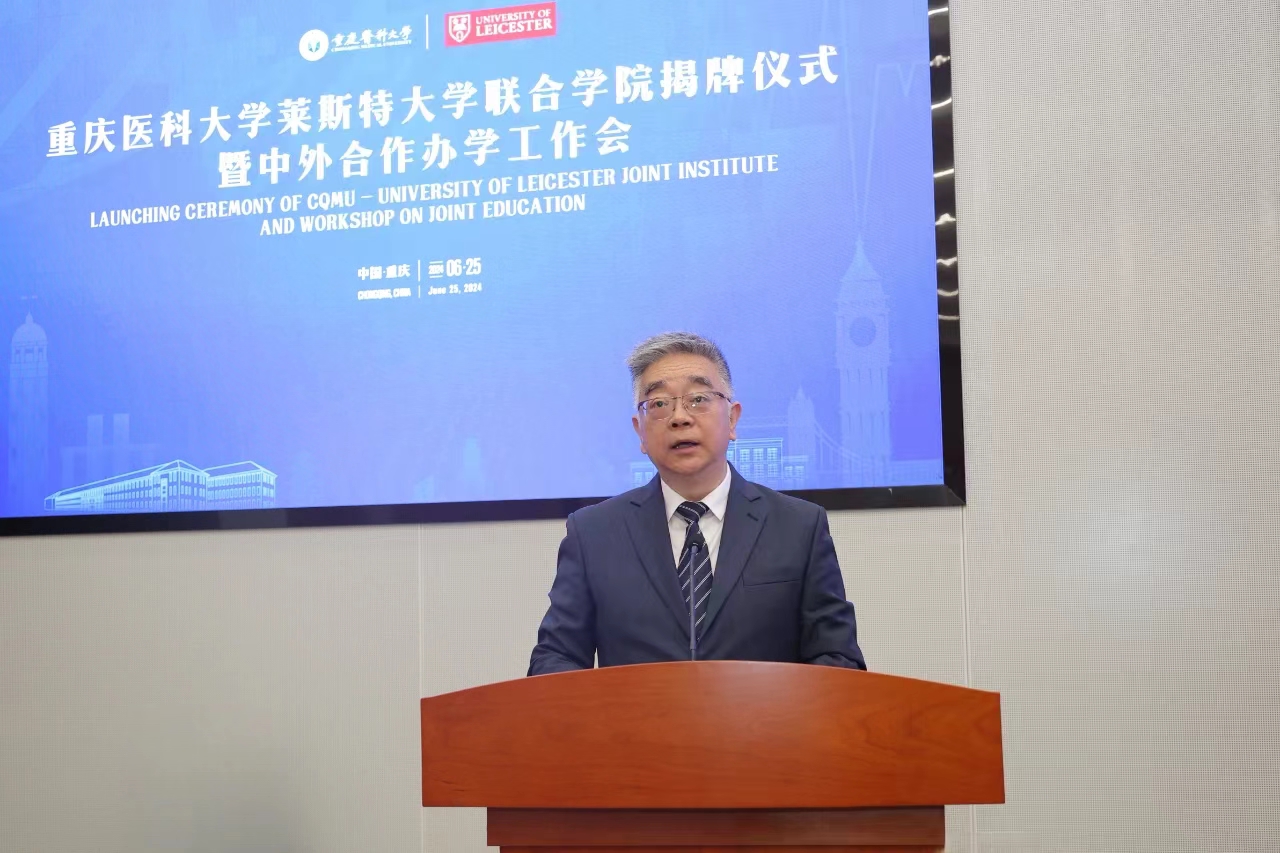 6月25日,华体会官方版网站登录入口与英国莱斯特大学合作设立的中外合作办学机构“华体会官方版网站登录入口莱斯特大学联合学院(CQMU - University of Leicester Joint Institute, Chongqing Medical University)”(以下简称“联合学院”)在华体会官方版网站登录入口袁家岗校区崇医楼学术报告厅隆重举行揭牌仪式。