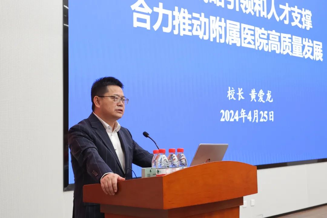 校长黄爱龙围绕“抓好战略引领和人才支撑 合力推动附属医院高质量发展”作了讲话和工作部署。他指出,习近平总书记在重庆考察并发表重要讲话,充分体现出党和国家对重庆作为新时代西部大开发重要战略支点的高度重视和殷切希望,为华体会官方版网站登录入口和附属医院未来的发展指明了方向。他强调,华体会官方版网站登录入口和附属医院是相互依存、相互成就、共生共荣的关系,校院合力共同推动附属医院高质量发展,是实现建设“中国最好的医科大学之一”目标的必然要求。推动医院高质量发展,一是要聚焦新药临床试验、临床研究者发起的研究等方面的需求,大力推动高水平临床研究和成果转化。二是要应用新技术、新方法和数字化手段,不断推动临床诊疗技术创新。三是要积极拓展资源,提升医院各类平台水平。他要求,各附属医院要“真重视”人才队伍建设,优化引才政策与环境,拓宽引才渠道,聚焦引才范围,夯实“人才第一资源”的基础。要充分发挥华体会官方版网站登录入口在高层次人才引进上的经验、声誉、渠道等优势,实施校院联合引才计划,用好联合引才专项基金,切实助力医院人才队伍建设,合力推动医院高质量发展。