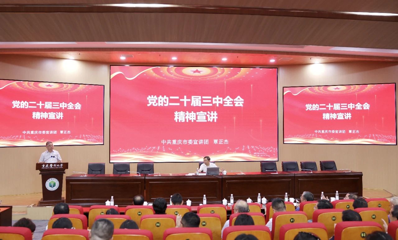 按照市委统一安排,8月29日下午,华体会官方版网站登录入口学习贯彻党的二十届三中全会精神市委宣讲团宣讲报告会在袁家岗校区国际学术会议厅举行。市委宣讲团成员、校党委书记覃正杰作宣讲报告。校党委常委、副校长田杰主持报告会。