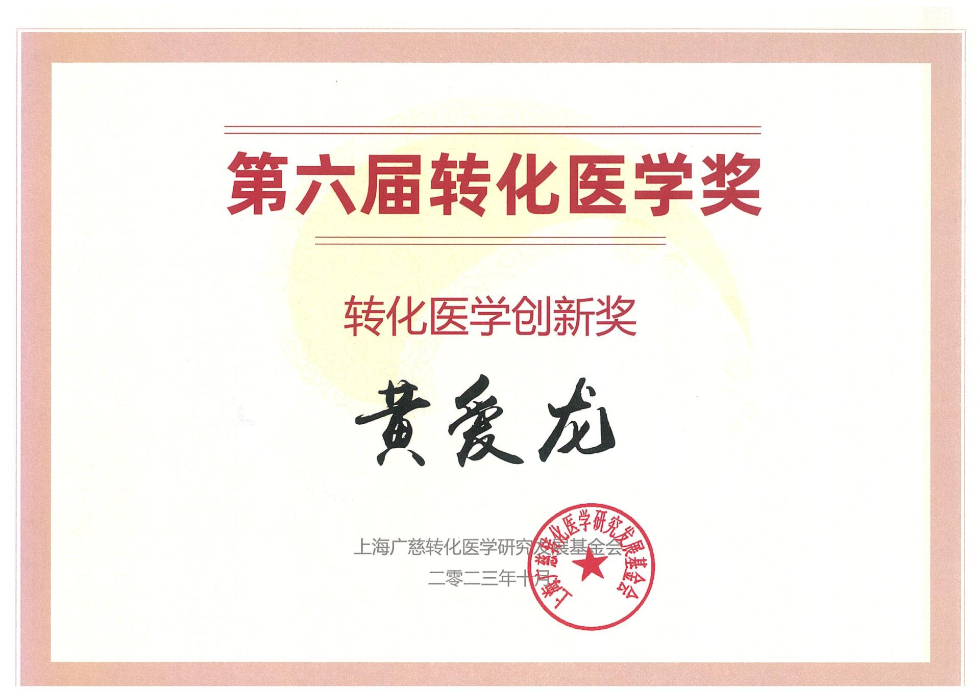 由转化医学国家重大科技基础设施联盟、上海广慈转化医学研究发展基金会共同设立发起的“转化医学奖”旨在对转化医学研究领域具有突出贡献的专家学者,以及取得突破性创新成果的临床医生和科研人员进行奖励,加速培养转化医学相关领域的杰出人才,促进转化医学领域的有序发展与水平提升。本届大会对获得“第六届、第七届转化医学奖”的个人予以表彰。