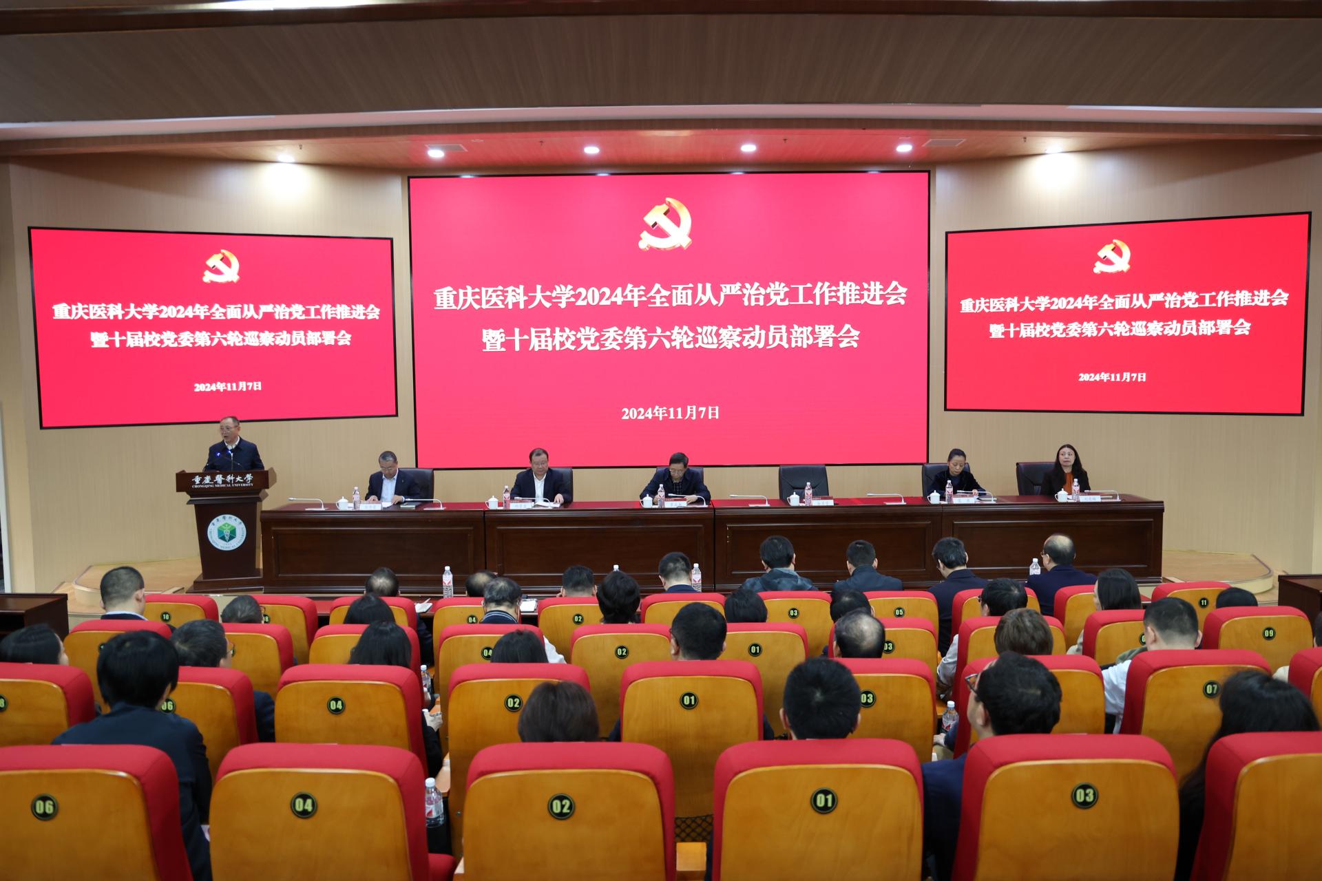 11月7日,华体会官方版网站登录入口召开2024年全面从严治党工作推进会暨十届校党委第六轮巡察动员部署会,深入贯彻落实习近平总书记关于党的自我革命的重要思想,落实市属高校全面从严治党暨纪检监察工作会议和市属高校“一把手”例会会议精神,推进市属高校基建、后勤、校办企业“三个专项”监督检查发现问题整改工作,调度清廉华体会官方版网站登录入口建设工作推进情况,动员部署十届校党委第六轮巡察工作,进一步压实管党治党政治责任,持续净化政治生态,为华体会官方版网站登录入口高质量发展提供坚强政治保障。校党委书记、校党委巡察工作领导小组组长覃正杰出席会议并讲话。校党委常委、纪委书记,市监委驻校监察专员,校党委巡察工作领导小组副组长余彦学主持会议。校党委常委、副校长,校党委巡察工作领导小组副组长余华荣宣读党委巡察组、评估组组长授权及任务分工决定。校领导葛萍、邱景富、刘恩梅出席会议。