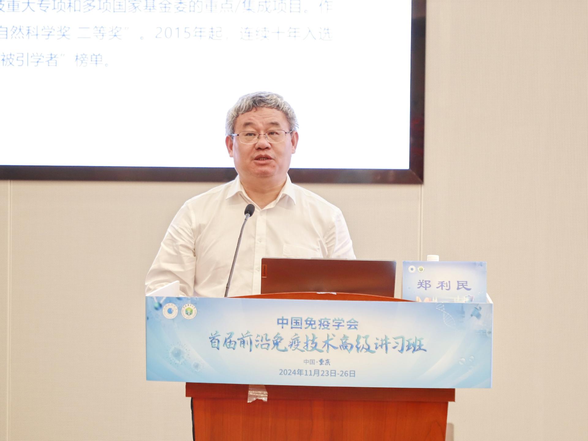 郑利民秘书长在致辞中强调了免疫学在当今生命科学和现代医学中的重要作用,并指出现代技术的不断进步,为免疫学研究带来了前所未有的机遇,在这样的背景下,开办本次前沿免疫技术高级讲习班的意义非凡。郑利民秘书长对我校承办此次讲习班表示感谢,并对我校免疫创新与转化研究院的发展寄予深深的厚望。