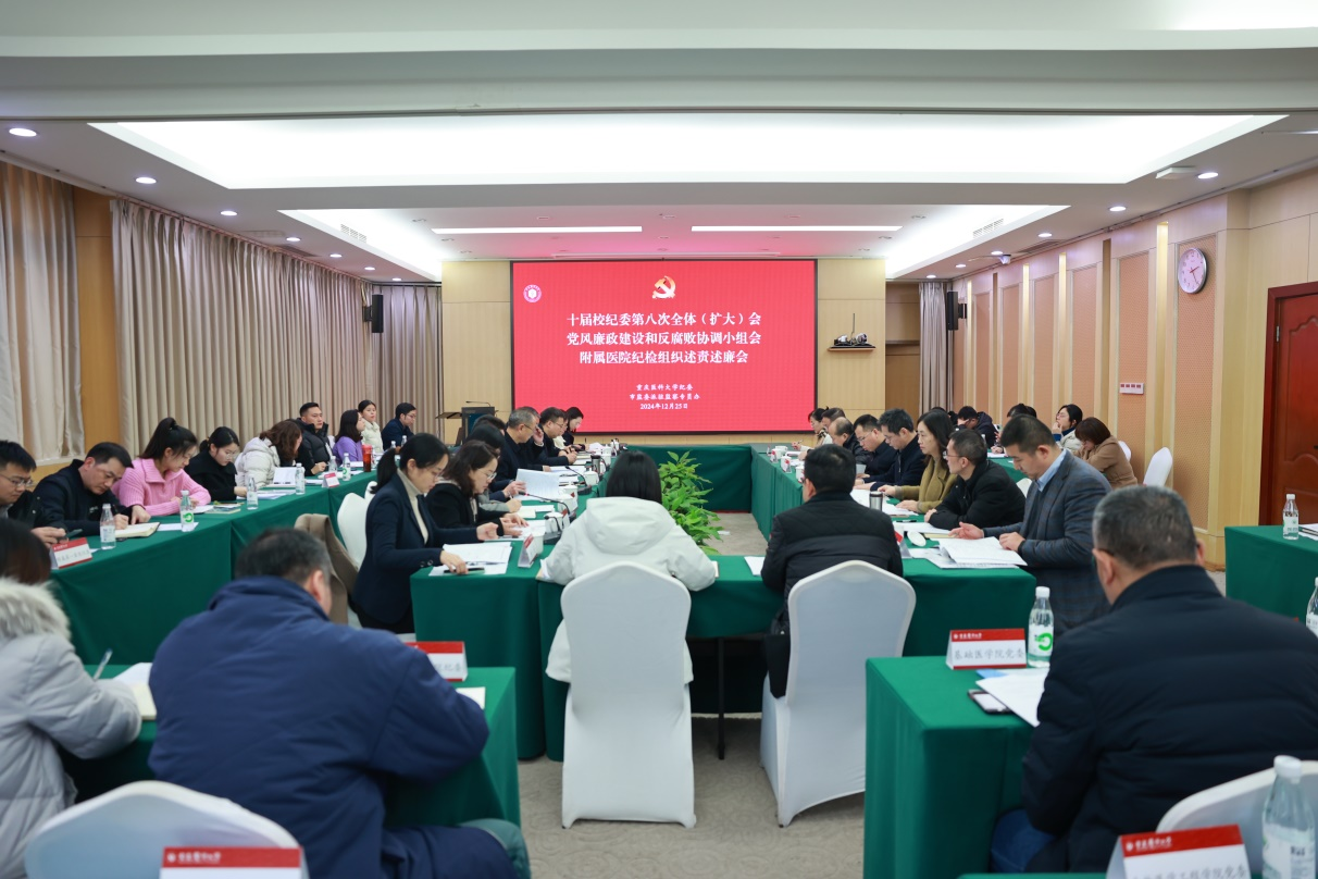 校党委常委、纪委书记,市监委驻校监察专员,党风廉政建设和反腐败协调小组组长余彦学指出,各协调小组成员单位在思想上高度重视、责任上真正落实、工作上打表推进、成效上十分显著,值得充分肯定。他对附属医院纪检工作取得的遵纪守纪执纪更加自觉、保障高质量发展更加有力、推动主体责任落实更加到位、“小切口”治理成效更加突出、科技赋能更加明显、越往后越严的信号更加强烈、清廉氛围更加浓厚等七个方面的工作成效给予了肯定,也指出有的党组织履行全面从严治党主体责任还不够严实、少数党员干部违规违纪问题时有发生、纪检组织监督执纪能力水平与高质量发展要求还有差距等问题。