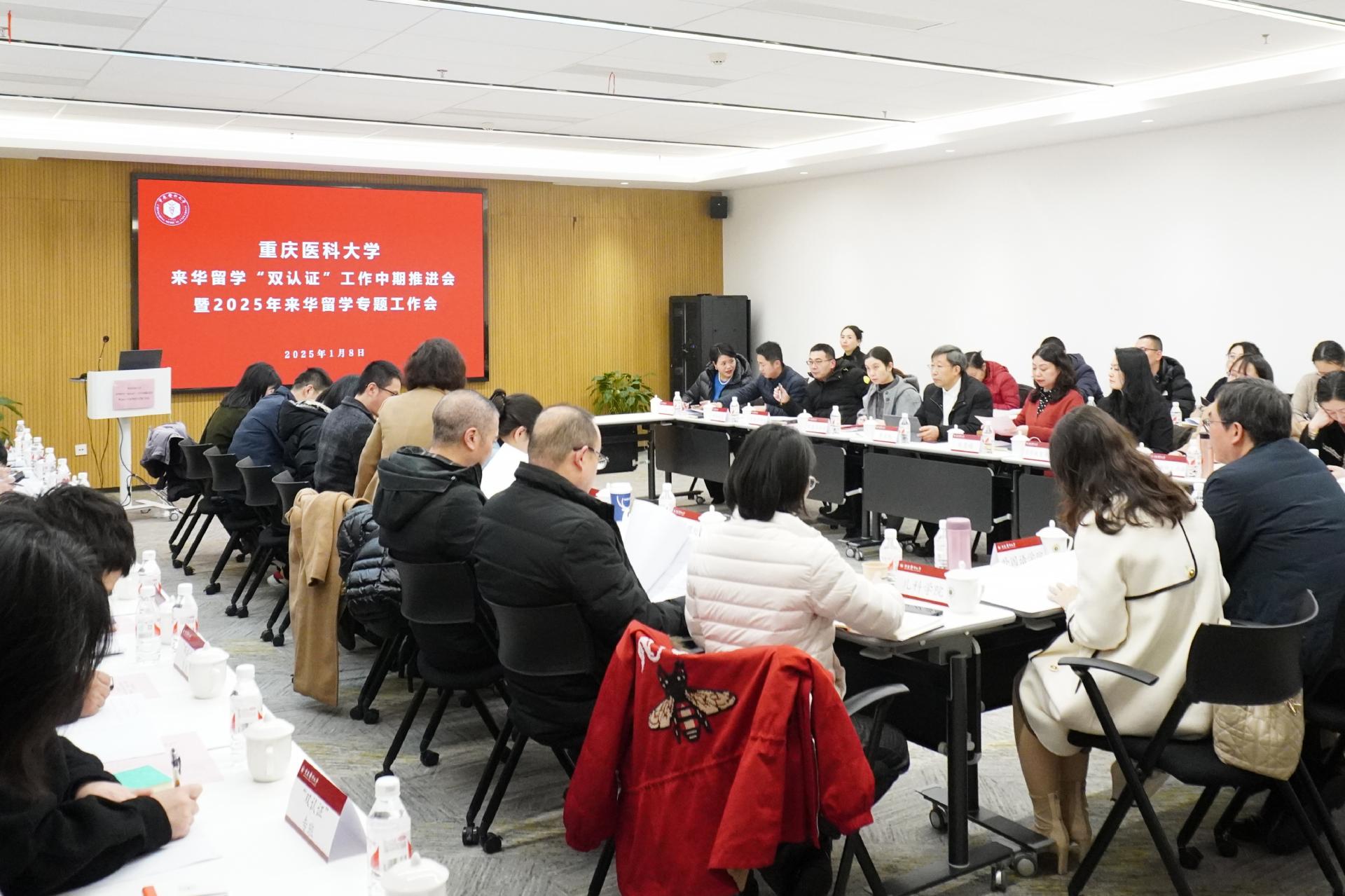 1月8日,华体会官方版网站登录入口在袁家岗校区崇医楼209会议室举行来华留学生高等教育质量认证和来华留学生临床医学专业本科教育(英语授课)专业质量认证工作中期推进会暨2025年来华留学专题工作会。会议由副校长刘恩梅主持。