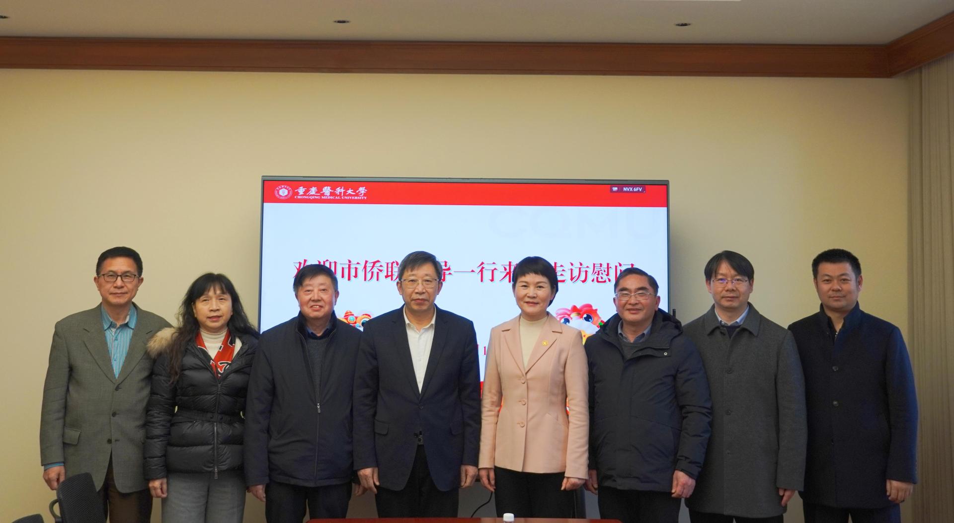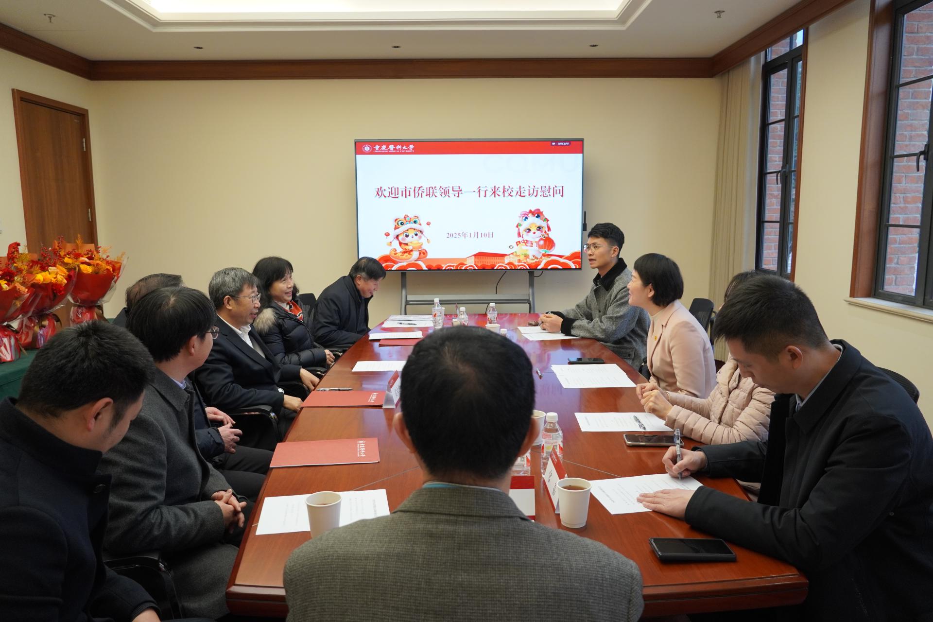 1月10日下午,重庆市侨联党组书记、主席,市委统战部副部长孟卫红一行来校走访调研并慰问侨界专家。校党委书记覃正杰,校级领导、工会主席冯跃林出席。校党委常委、统战部部长梁柱俊主持会议。