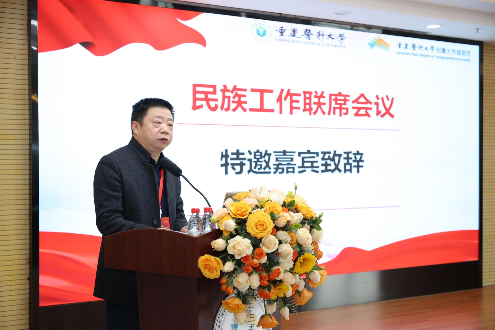 本次民族联谊日系列活动由附属大学城医院党委及少数民族联谊会附属大学城医院分会承办。此次活动还邀请到市委统战部、市民宗委、市民族团结进步促进会、西部科学城重庆高新区党工委统战部、虎溪街道党工委相关职能部门负责人,各附属医院分管统战工作的领导、党办负责人,校本部各直属党组织书记、副书记等参加此次活动。