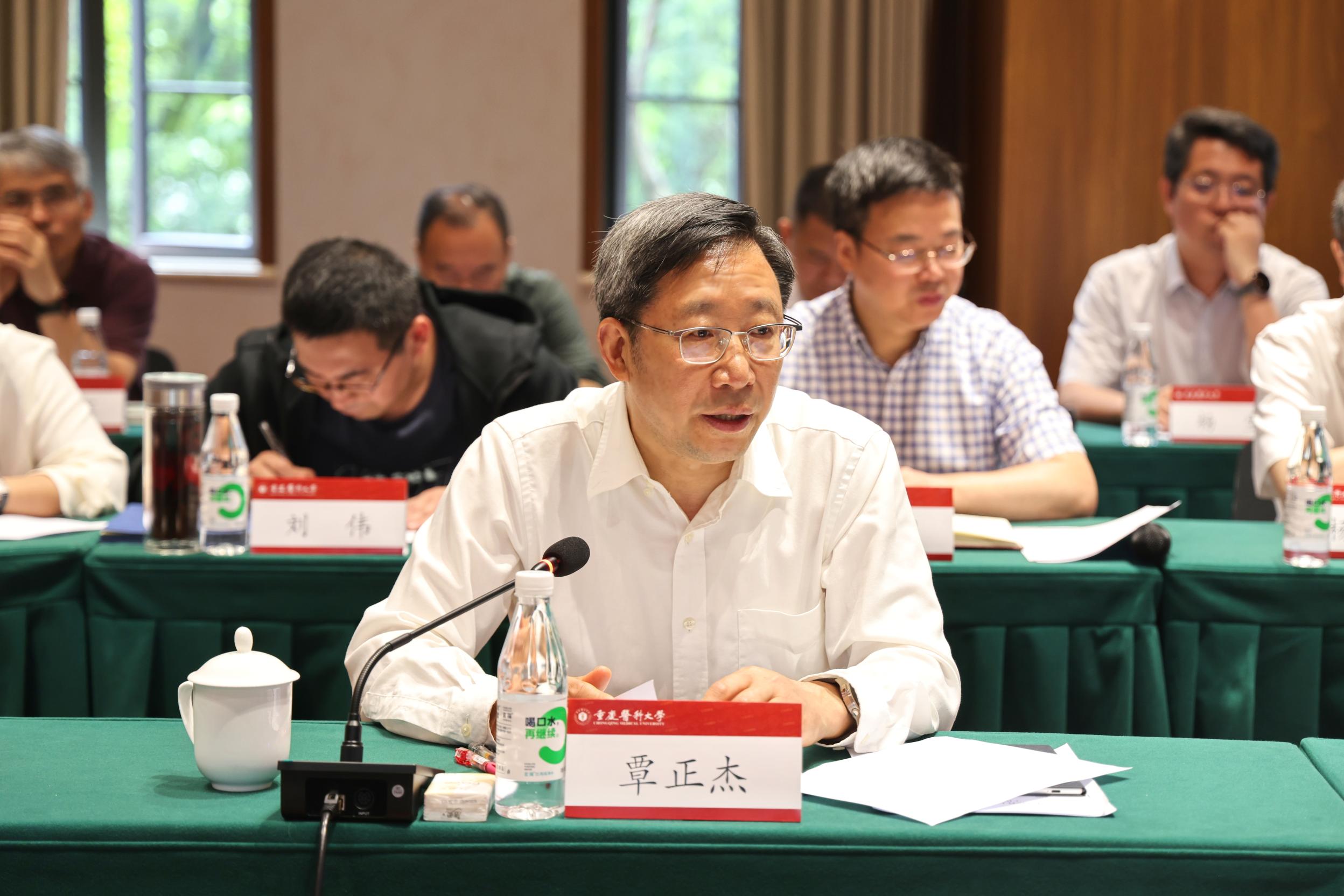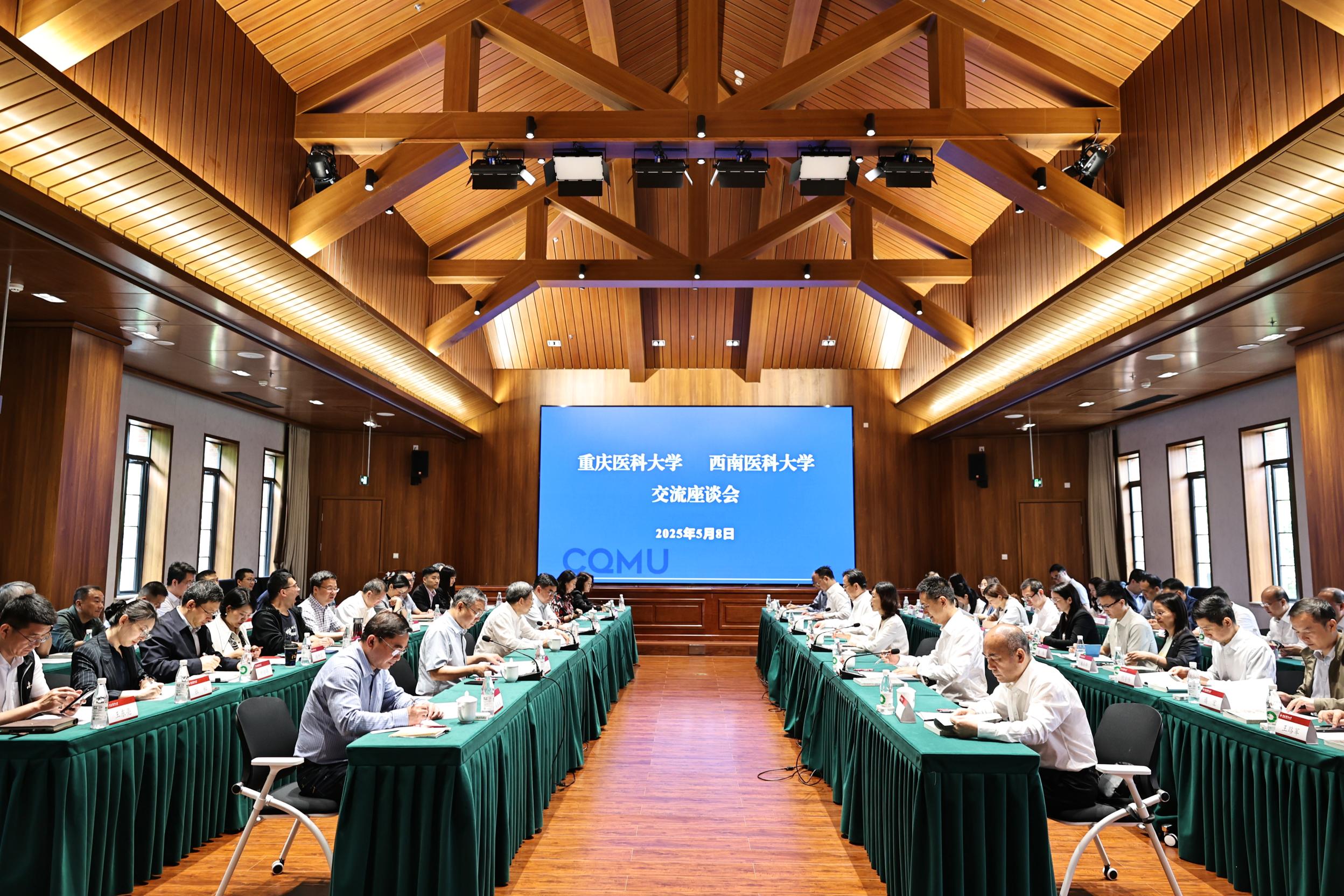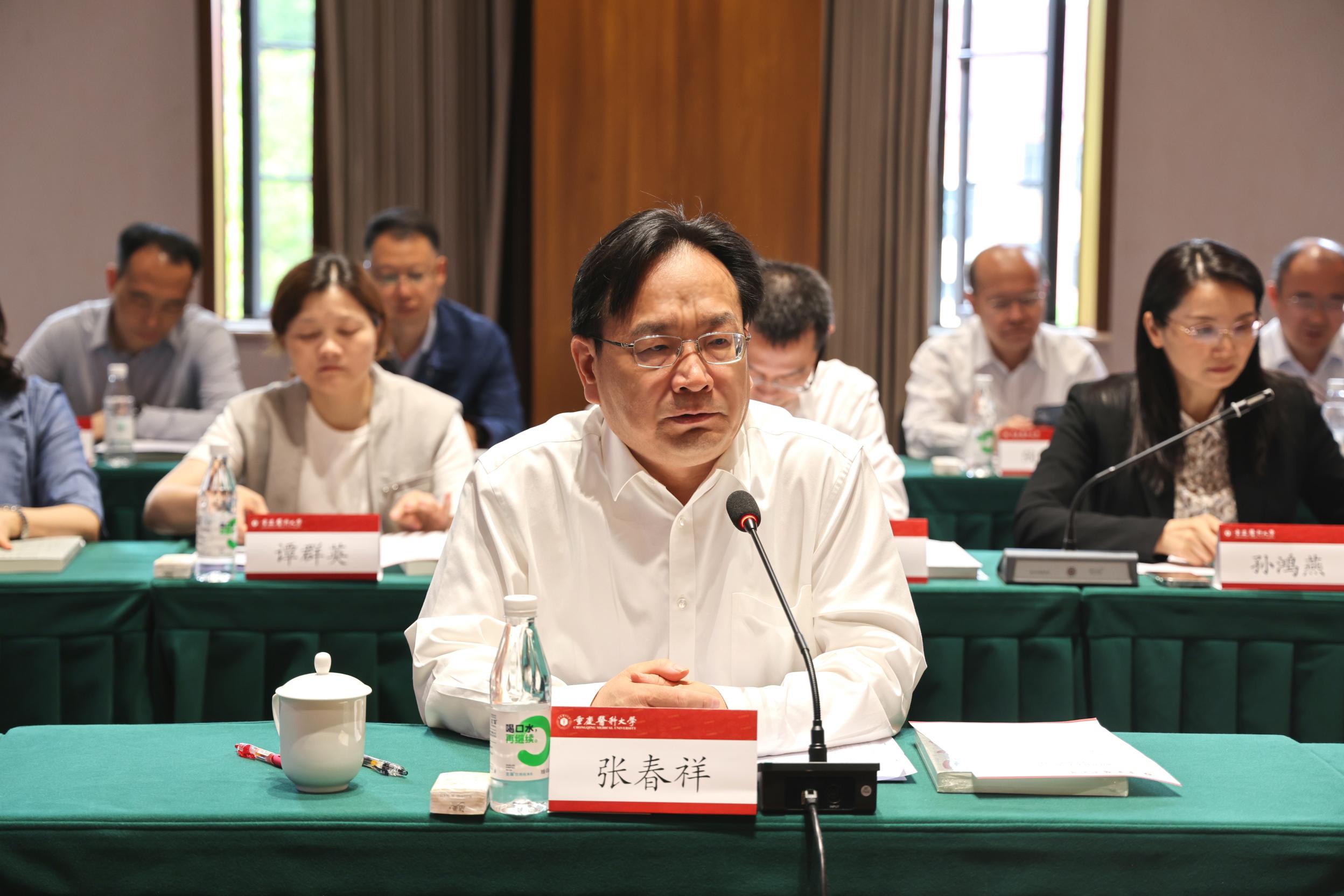 两校在袁家岗校区举行交流座谈会,共谋医学教育创新发展,共商深化校际合作。覃正杰对张春祥、何涛一行的到来表示热烈欢迎,简要介绍了我校发展情况,就党建统领、立德树人、治理改革等进行交流。他对西南医科大学扎根西部、服务人民的坚守深表钦佩,希望双方以此次交流为契机深化合作,在成渝地区双城经济圈建设等战略中携手共进。