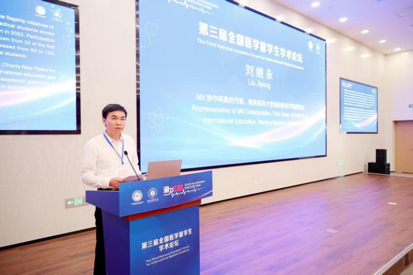 南京医科大学国际教育学院副院长刘继永教授代表M9协作网发言。他回顾了M9协作网自2021年成立以来的蓬勃发展,强调了论坛作为品牌活动在促进全国医学留学生学术交流、扩大协作网影响力的重要作用。