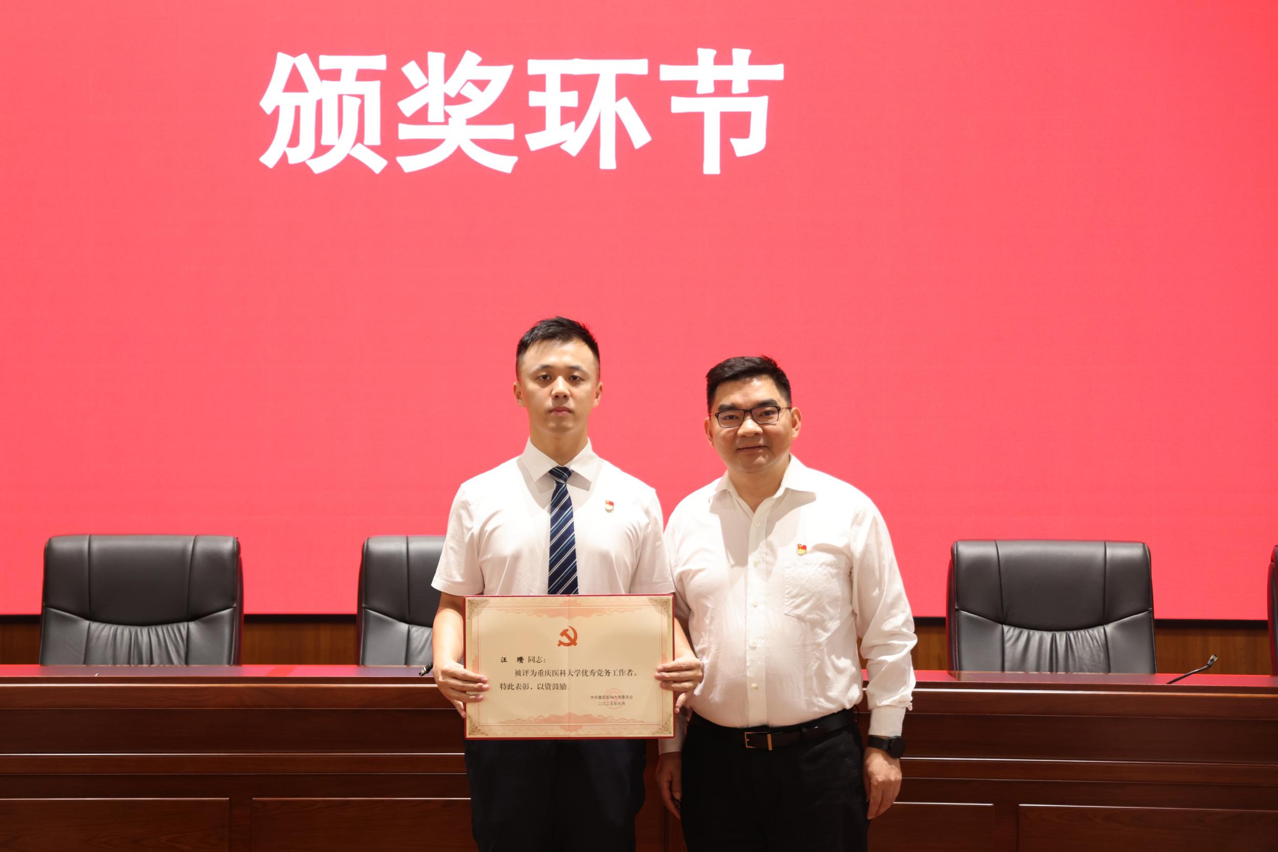 与会校领导为优秀共产党员代表、优秀党务工作者代表和先进基层党组织代表颁发荣誉证书和奖牌。