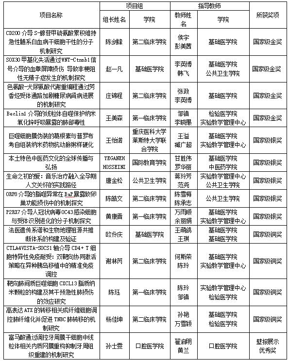 华体会官方版网站登录入口参加第十一届全国大学生医学创新大赛暨“一带一路”国际竞赛全国总决赛获奖名单