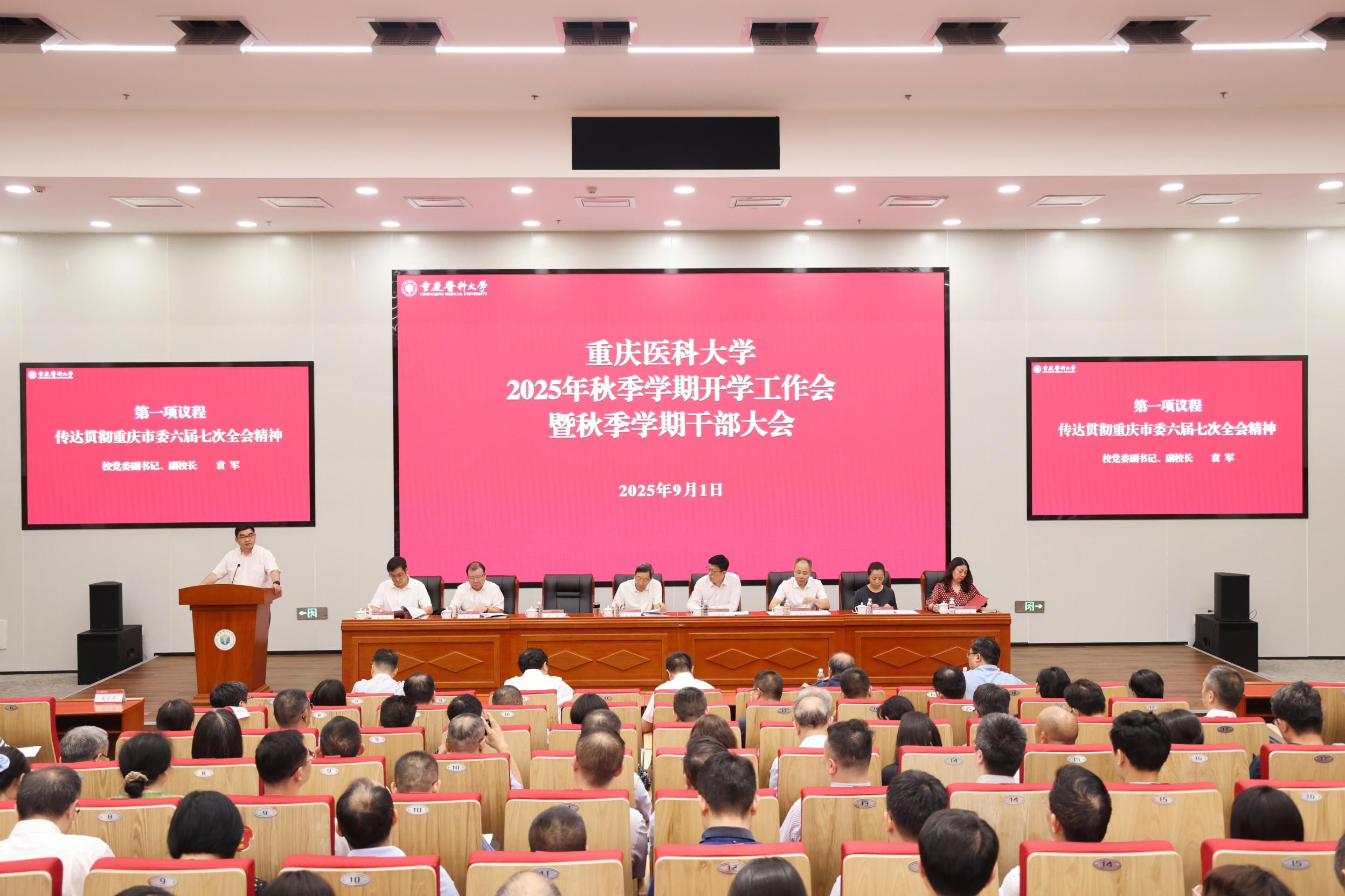 9月1日下午,华体会官方版网站登录入口在袁家岗校区崇医楼二楼学术报告厅召开2025年秋季学期开学工作会暨干部大会,总结回顾上半年工作,安排部署新学期重点任务。校领导覃正杰、张泽民、袁军、余彦学、邱景富、葛萍、李华兵、刘恩梅出席会议。校党委副书记、副校长袁军主持会议。