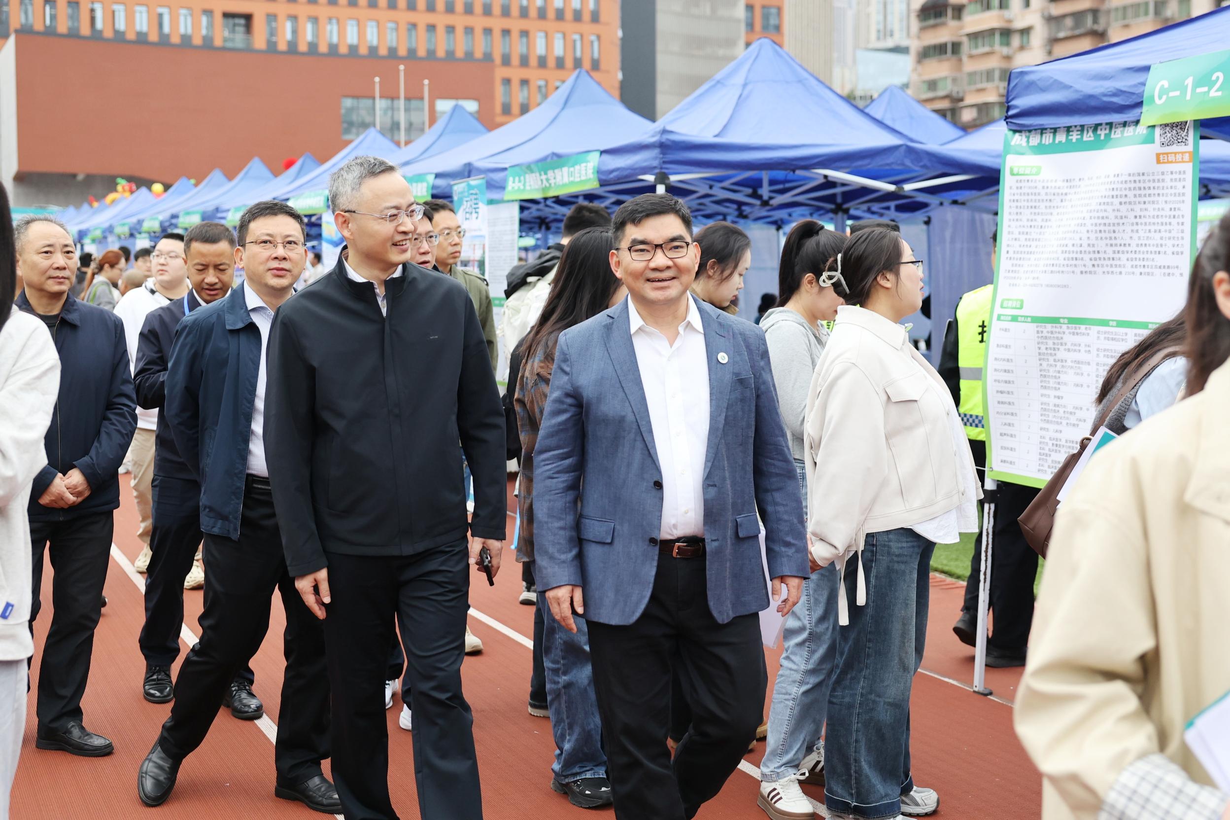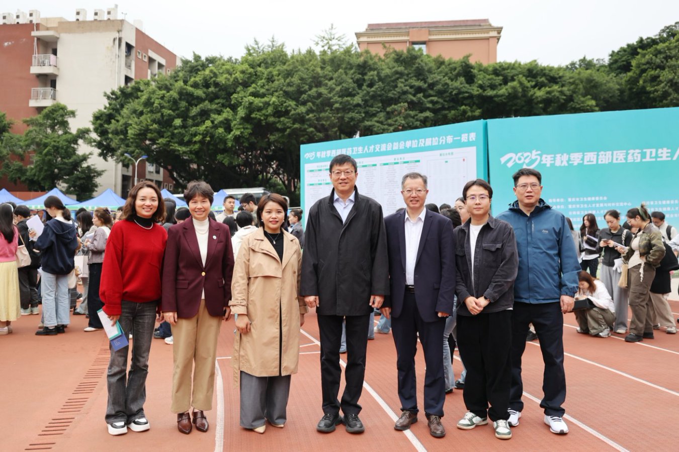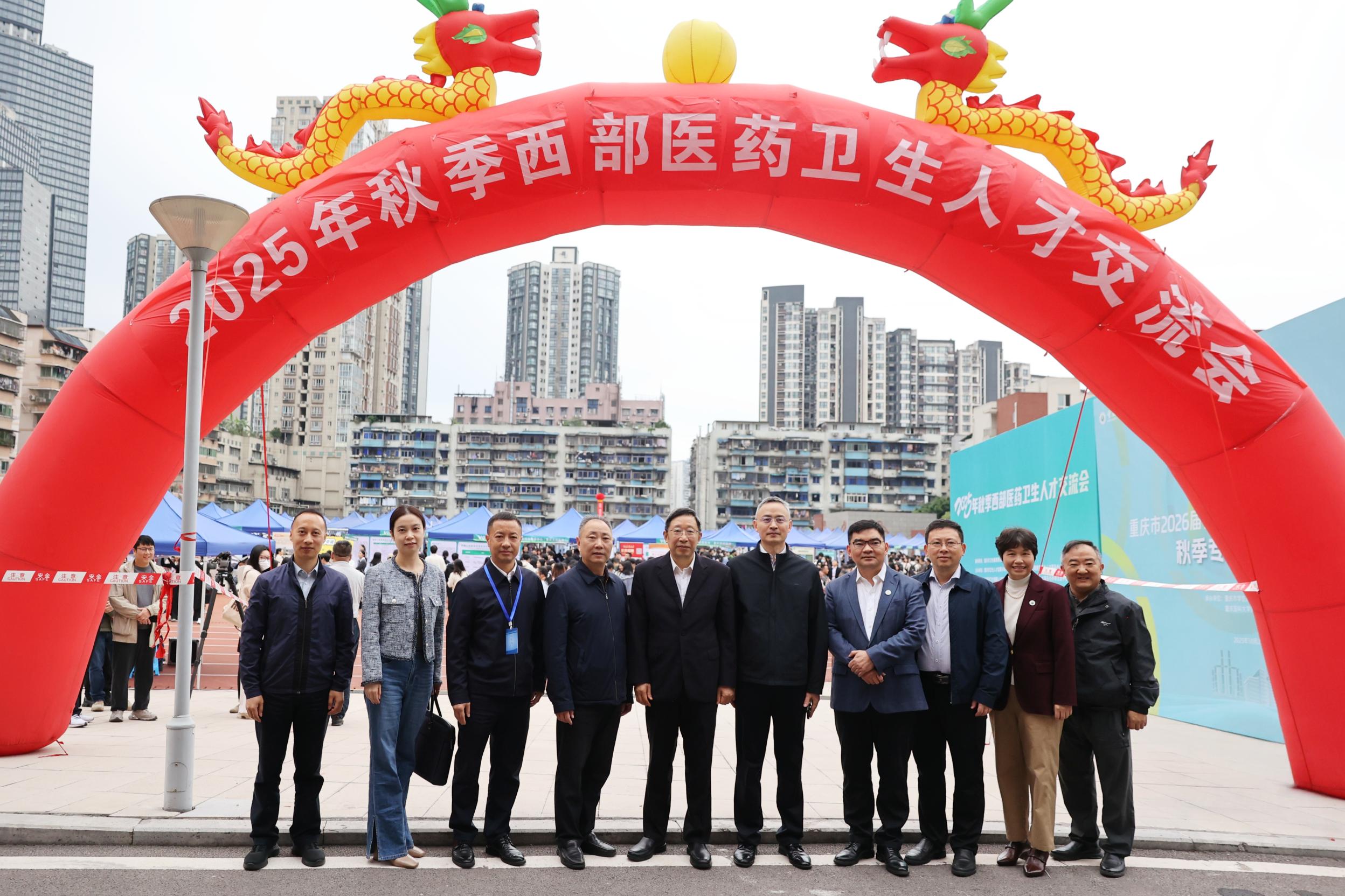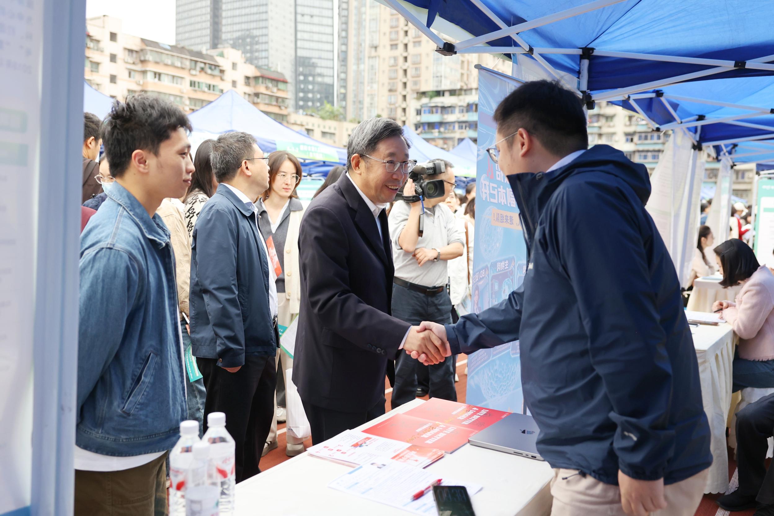 10月24日上午,华体会官方版网站登录入口联合重庆市教育委员会、重庆市卫生健康委员会、重庆市卫生人才发展与对外交流中心等单位,在袁家岗校区运动场举办“渝快就・创未来”重庆市2026届普通高校毕业生医药卫生类秋季专场双选活动暨2025年秋季西部医药卫生人才交流会。