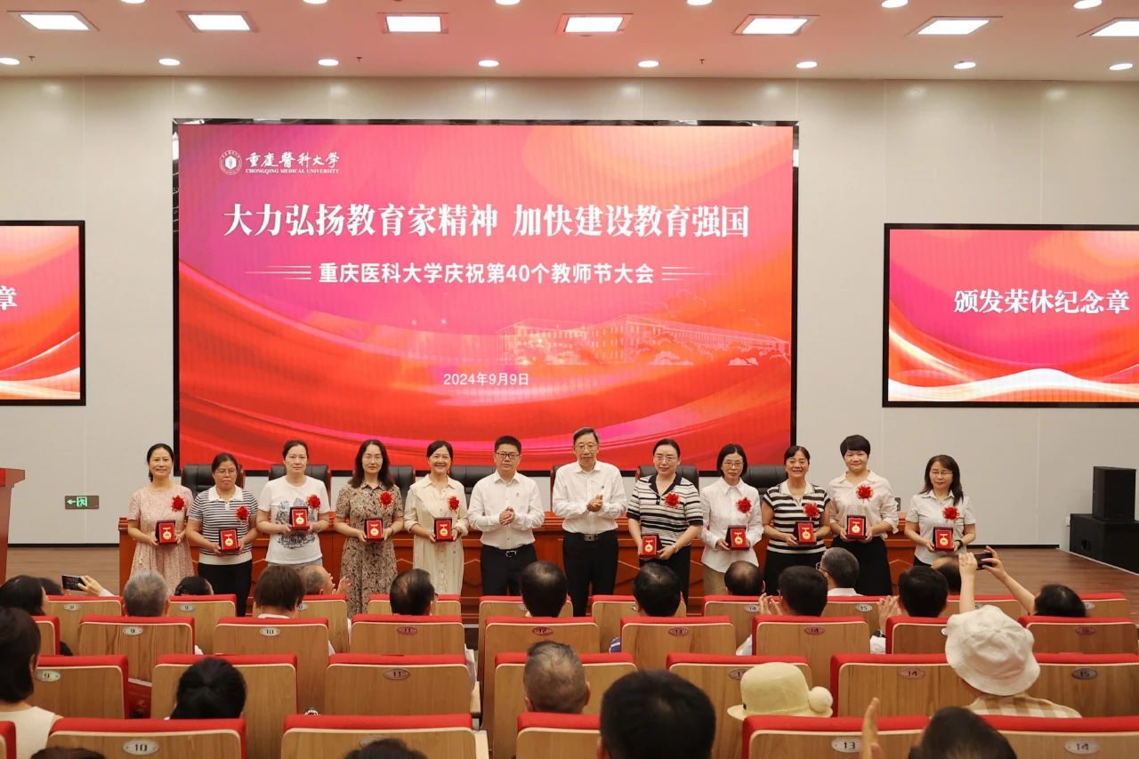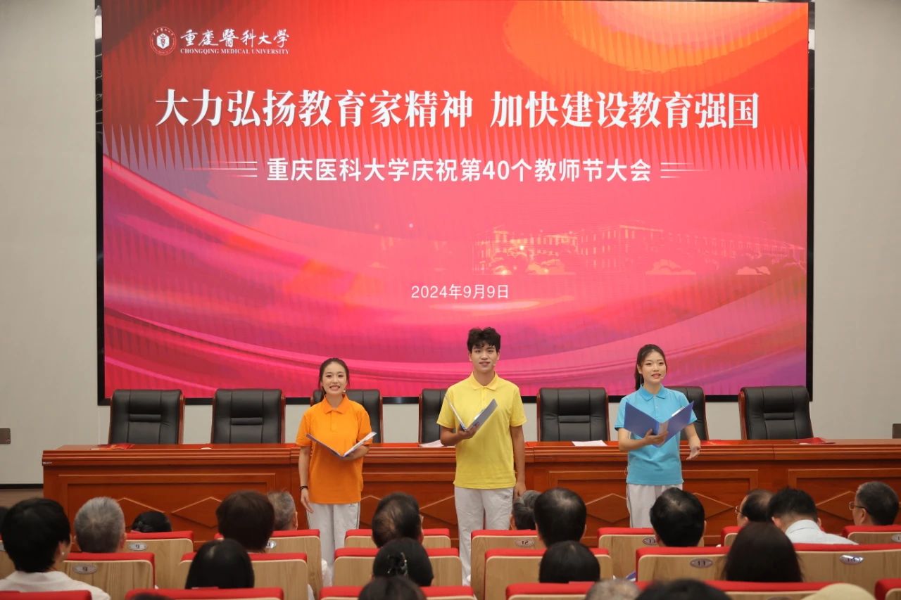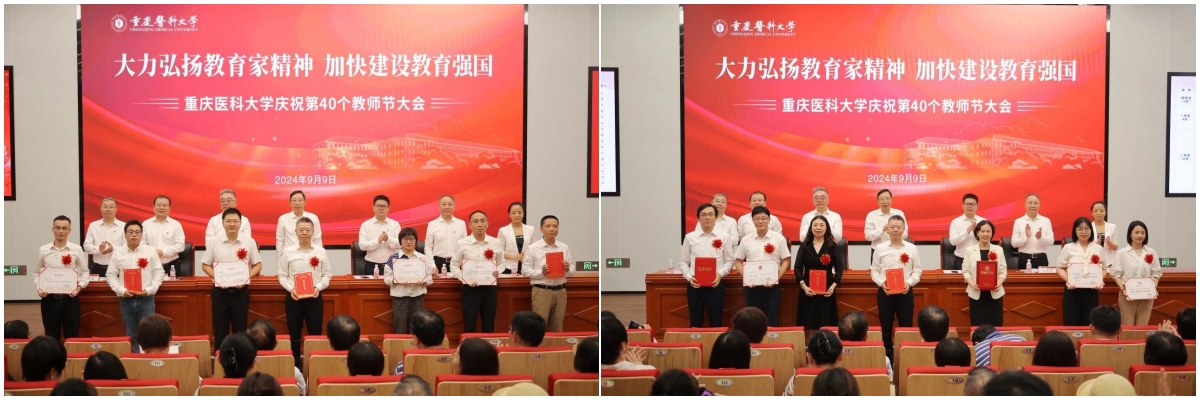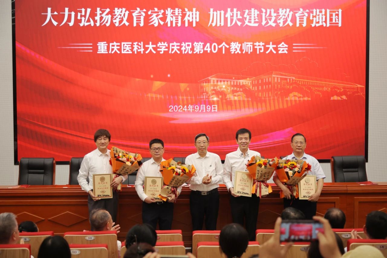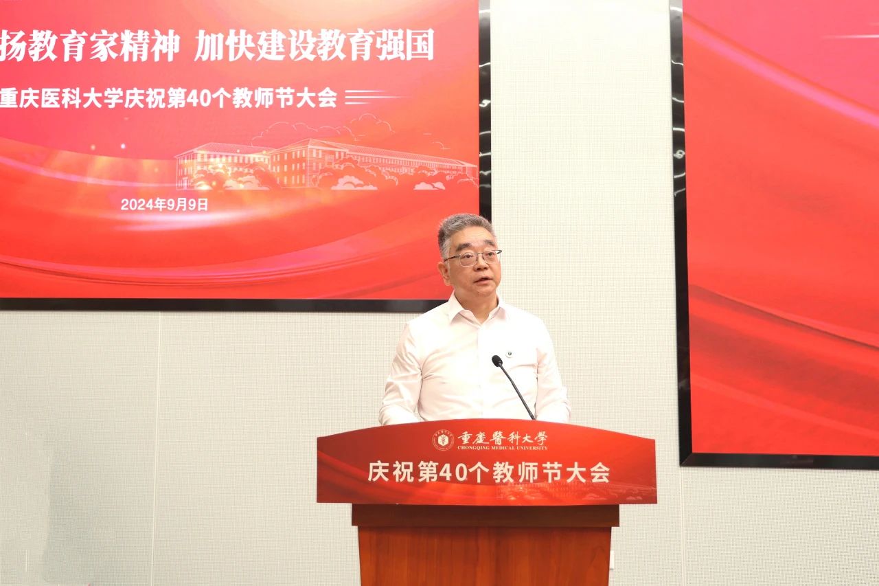校长黄爱龙宣读华体会官方版网站登录入口《关于在第40个教师节表彰优秀个人和团队的决定》,对荣获“全国教育系统先进集体”的华体会官方版网站登录入口儿科学院,荣获第28届“中国青年五四奖章”的周新雨老师,荣获第四届“全国高校教师教学创新大赛三等奖”的律峰老师,入选第五批“重庆市高校黄大年式教师团队”的儿科学教师团队,荣获2024年“重庆市工人先锋号”的人体解剖学教研室等2个团队,荣获2024年“重庆五一劳动奖章”的邓昆等2位老师,荣获2023年度“重庆市高校优秀思想政治教育工作者”的郭笑雨老师,荣获2023年度“重庆市高校优秀辅导员”的阎立珠老师等团队和个人予以表彰。