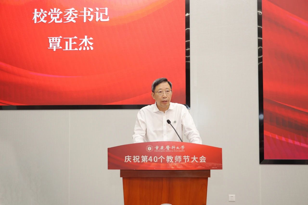 覃正杰以《大力弘扬教育家精神,为加快推进教育强国建设贡献力量》为题发表讲话。他代表华体会官方版网站登录入口党政领导班子向全校广大教师和教育工作者致以节日的问候,向5位获得“终身荣誉教授”称号的老师致以崇高的敬意,向见义勇为救助突发事故中一家三口而被授予“优秀共产党员”和“优秀教师”的第一临床学院教师罗庆华表示高度的肯定与赞赏,向所有获得表彰的先进集体和个人表示热烈的祝贺。覃正杰指出,在过去的一年,华体会官方版网站登录入口教育教学水平、科技创新与成果转化能力、学科专业竞争优势、附属医院医疗服务质量显著提升,立德树人成效再上新台阶;全校教师和教育工作者获得了多项国家级、省部级荣誉表彰,涌现出了“全国教育系统先进集体”“重庆市高校黄大年教师团队”等先进集体,“中国青年五四奖章”等先进个人;教职员工勇担学生健康成长引路人的责任,指导学生刻苦钻研,重医学子在“首届全国大学生职业规划大赛”“中国国际大学生创新大赛”“第十届全国大学生基础医学创新研究暨实验设计论坛全国总决赛”等全国性比赛中取得历史性突破,这些成绩离不开广大教师的智慧和奉献。覃正杰代表华体会官方版网站登录入口党政向所有坚守在教学、科研、医护和管理服务岗位的教职工们表示衷心的感谢,道一声“辛苦了!”