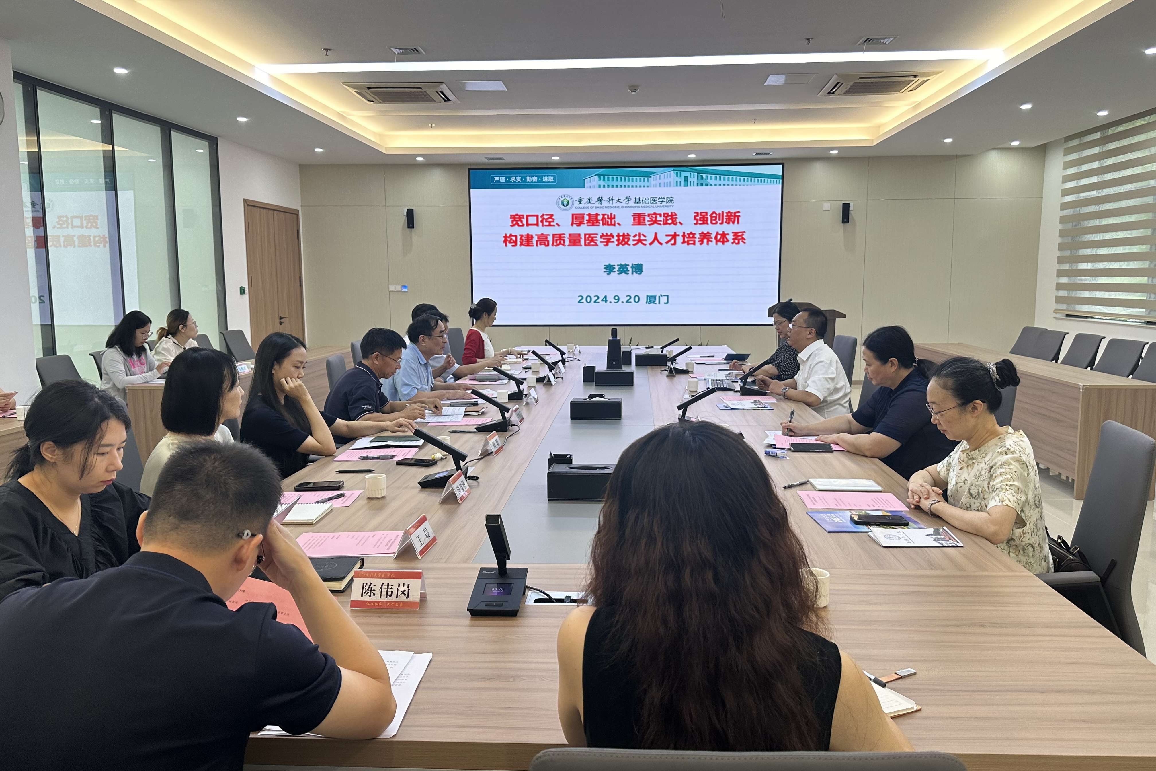 9月20日,我校基础医学院受厦门大学医学院韩家淮院士邀请,赴厦门大学参加拔尖人才培养交流会。中国科学院院士、厦门大学医学院院长韩家淮主持座谈会,厦门大学医学院党委书记李峰、副院长张杰,生命科学学院副院长李勤喜、医学院教务办主任李晴、博伊特勒学院秘书周璐等工作人员参加。我校基础医学院副院长李英博带队,基础医学院教务科及人体解剖学教研室主任冉建华、生理学教研室主任陈笛赴厦大交流访问。