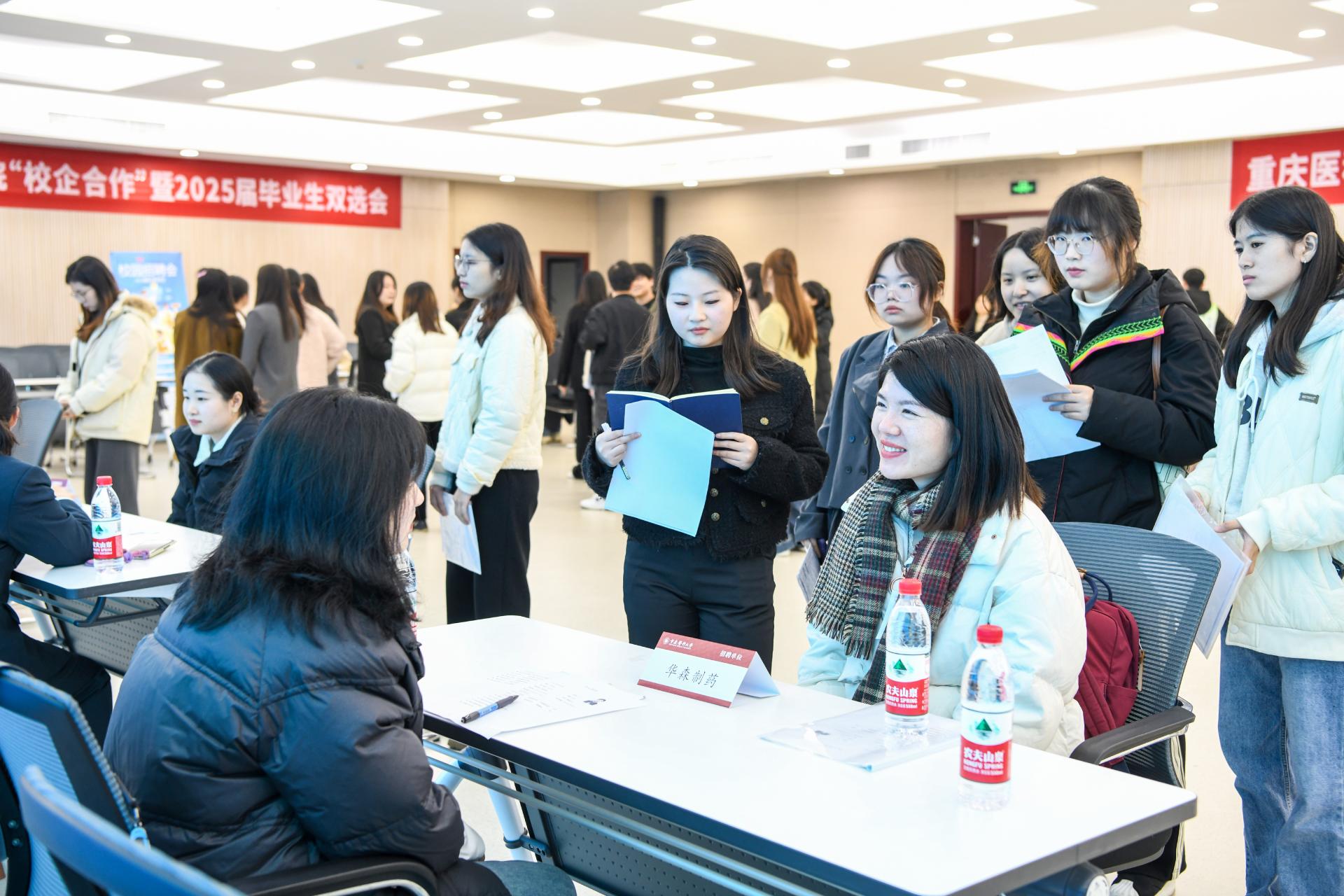 为深入学习贯彻党的二十届三中全会精神,落实党中央、国务院和重庆市委、市政府关于高校毕业生就业工作的决策部署,进一步加强校企合作,助力2025届毕业生高质量充分就业,12月5日上午9时,华体会官方版网站登录入口举办了“校企合作”暨2025届毕业生双选会。校级干部、校工会主席冯跃林,重庆市学生就业与创新创业服务中心信息市场部部长刘露,附属璧山医院党委副书记陶锐,研究生院副院长许瑞,党委学生工作部副部长、学生处副处长滕永直,各招聘单位代表,外国语学院领导班子及师生共200余人参加此次活动。外国语学院院长李佳颖主持会议。