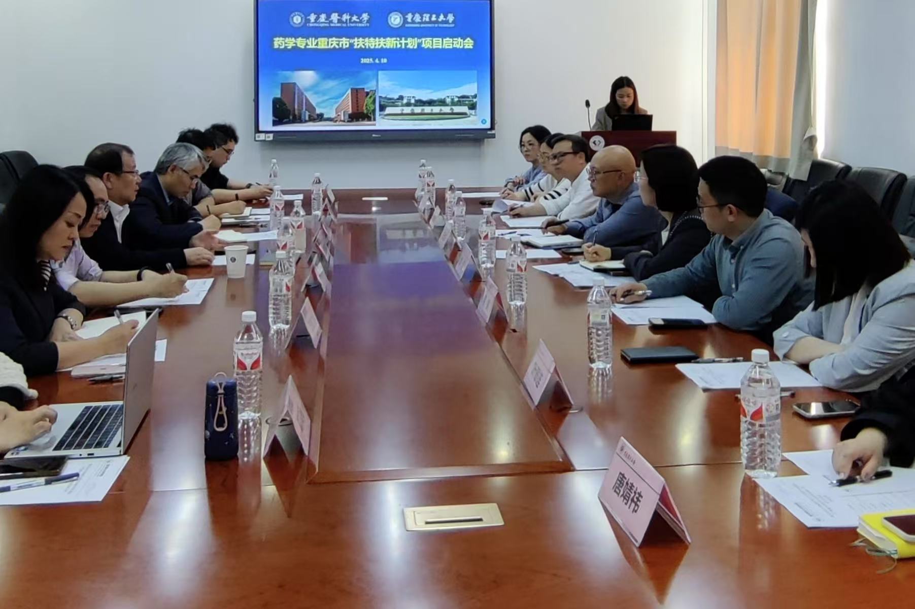 4月11日下午,华体会官方版网站登录入口与重庆理工大学在华体会官方版网站登录入口药学院会议室举行“药学专业扶特扶新计划”启动会。我校副校长邱景富、教务处副处长陈戈、药学院院长党永军;重庆理工大学药学与生物工程学院副院长王远强、药学系主任娄洁及相关教师代表参加本次会议。会议由我校药学院副院长邱红梅主持。