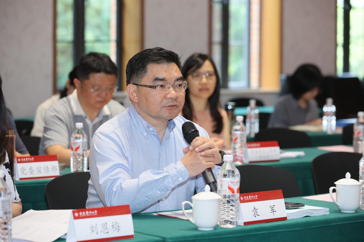 为推进华体会官方版网站登录入口年度重大工作,全面诊断“双认证”落实情况,以评促改、以评促建,助力来华留学教育提质增效,5月30日,来华留学模拟“双认证”集中汇报会及交流会在袁家岗校区南楼B322会议室举行。校党委副书记、副校长袁军出席会议,副校长刘恩梅主持会议。