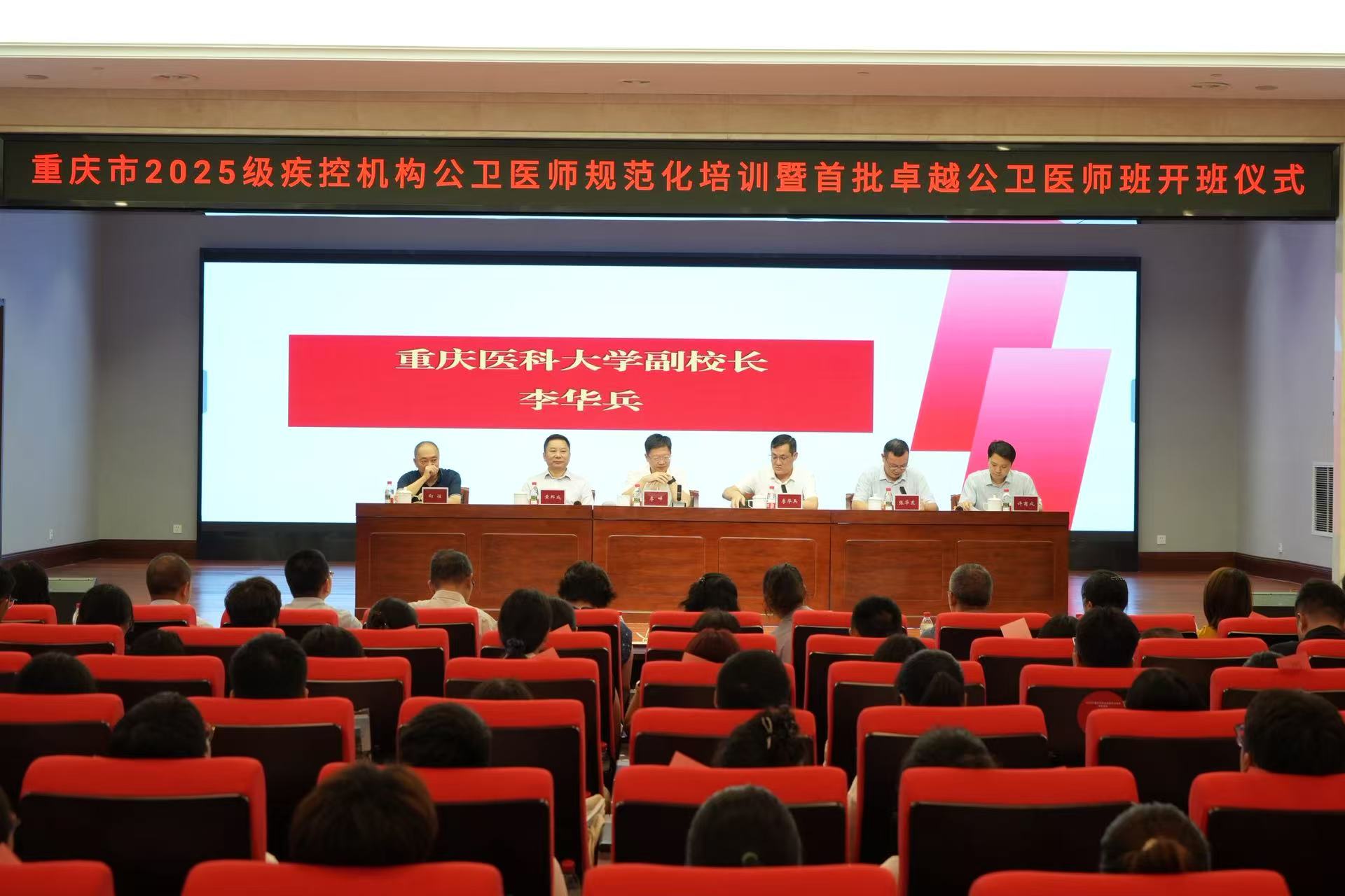 9月11日,重庆市2025级公卫医师规范化培训暨首批卓越公卫医师班开班仪式举行。市卫生健康委党委副书记,市疾控局党组书记、局长李畔,华体会官方版网站登录入口党委常委、副校长李华兵出席开班仪式。重庆市疾控局、华体会官方版网站登录入口、重庆市疾控中心、重庆市卫生人才中心等单位相关人员和公卫医师规范化培训学员近100人参加。