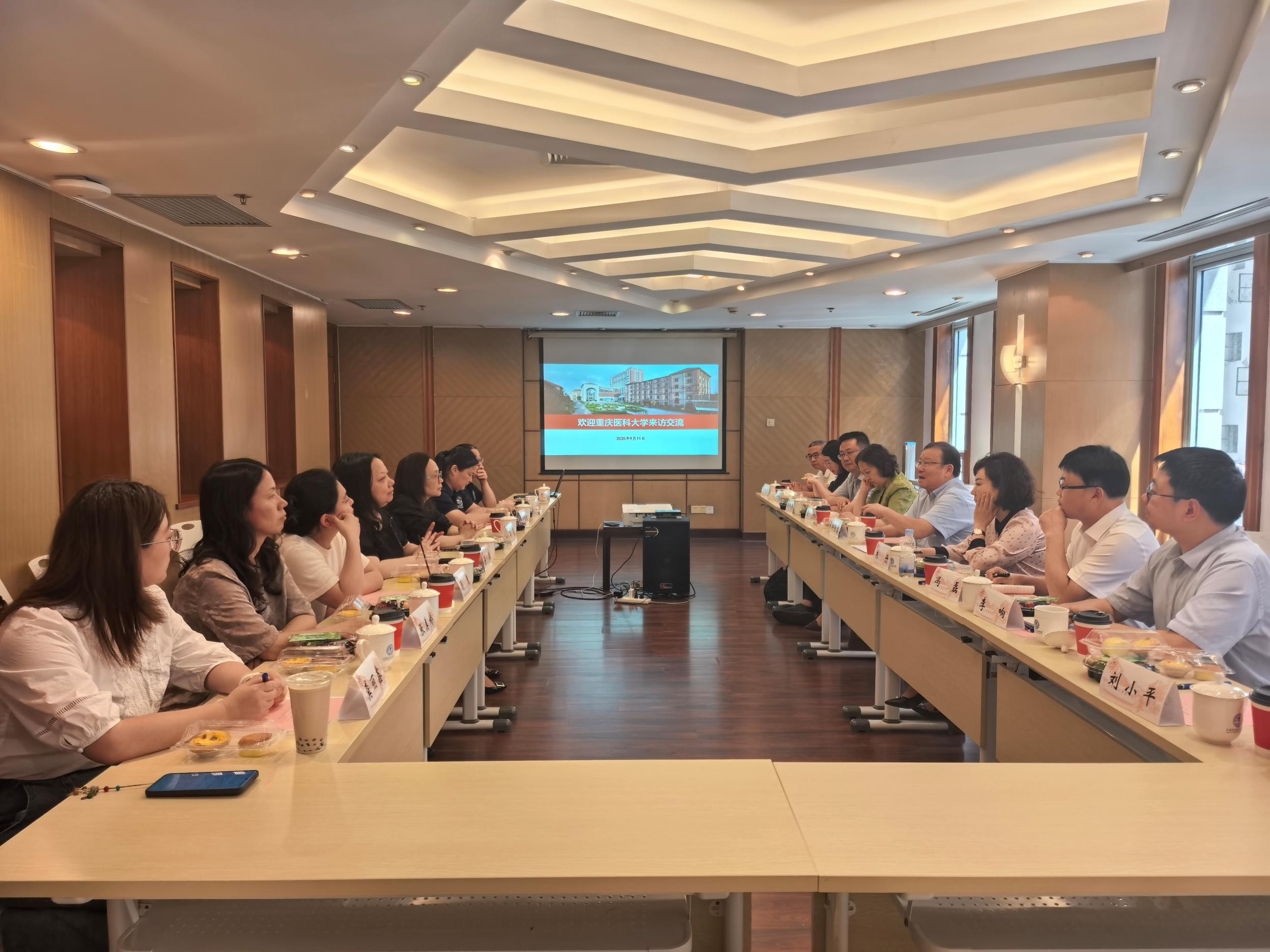 在复旦大学上海医学院枫林校区,副院长吴凡、党政办公室主任许晓茵、教务处副处长高海峰等对我校一行表示热烈欢迎,双方围绕“十五五”规划战略布局、专业结构优化调整、人才培养模式创新、人工智能赋能医学教育等议题,深入交流了医学教育内涵式发展的经验与实践路径。邱景富对复旦上医长期以来对重医发展的关心和支持表示衷心感谢。他指出,两校渊源深厚,复旦上医的“西迁精神”始终激励着重医人砥砺奋进。面对新时代医学教育发展的新要求,希望复旦上医能够继续弘扬西迁精神,在专业建设、师资培养、医学人文教育、拔尖人才培养等方面给予更多指导支持,共同推动医学教育高质量发展。