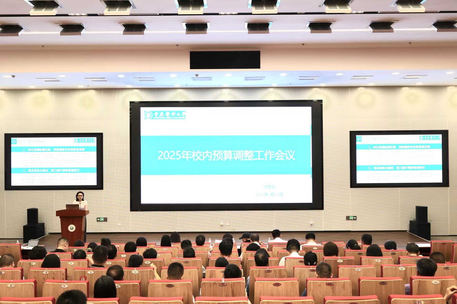 9月18日上午,华体会官方版网站登录入口在袁家岗校区崇医楼二楼学术报告厅召开2025年校内预算调整工作会议。副校长刘恩梅出席会议并讲话,会议由财务处处长钟珂主持。