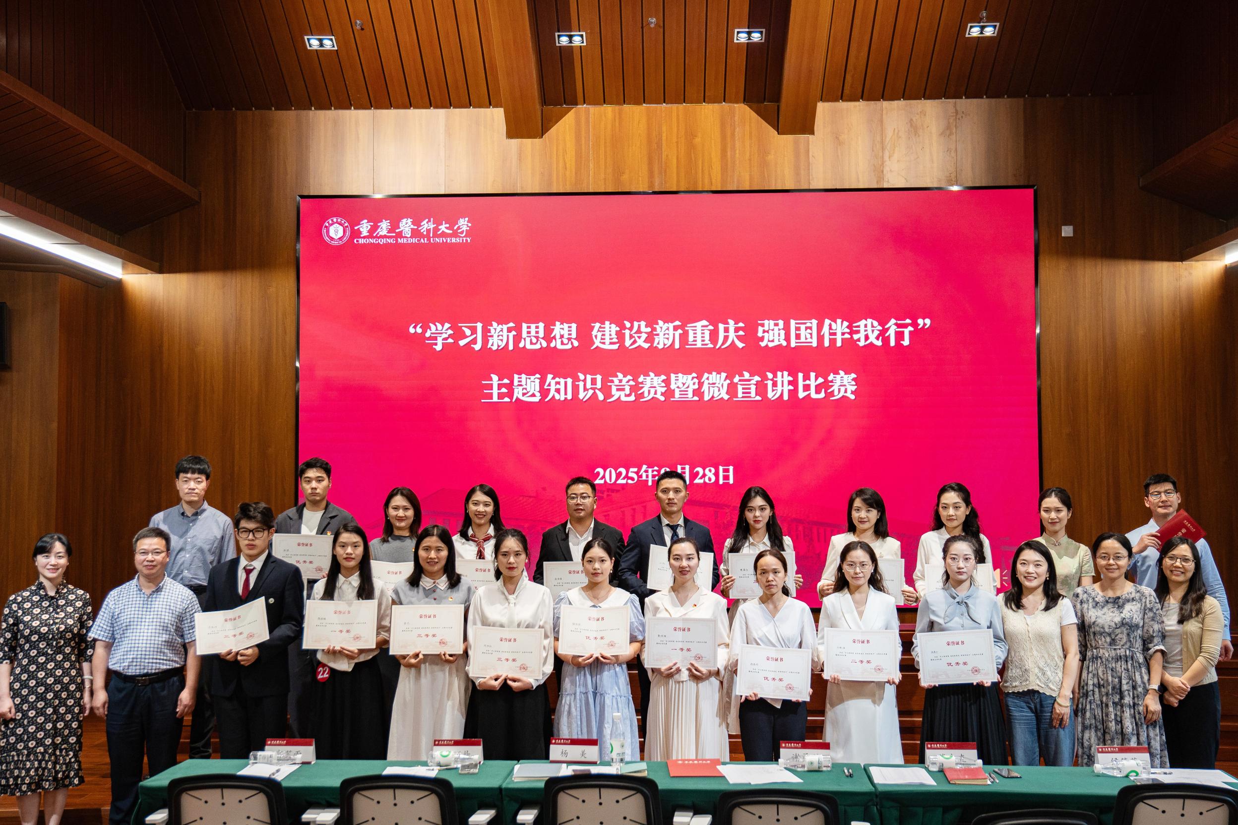 比赛现场,选手们紧紧围绕“学习新思想 建设新重庆 强国伴我行”这一主题,密切结合思想和工作实际,为现场观众呈现了一场精彩纷呈的理论宣讲盛宴。他们有的立足专业岗位,深情讲述作为人民健康“侦察兵”的坚守、在急救前线守护“新重庆速度”的担当;有的聚焦立德树人使命,分享了在课堂上引导学生探索医学前沿、开拓国际视野、扎根基层奉献的探索故事;有的用青春的视角诠释了对“新思想”与“新重庆”的理解,从轨道交通的“快”与市井生活的“慢”里,敏锐捕捉并动情讲述了城市发展中的民生温度……深入、深情、深刻的宣讲充分展示了新时代重医青年师生踔厉奋发、深学笃行的良好风貌。