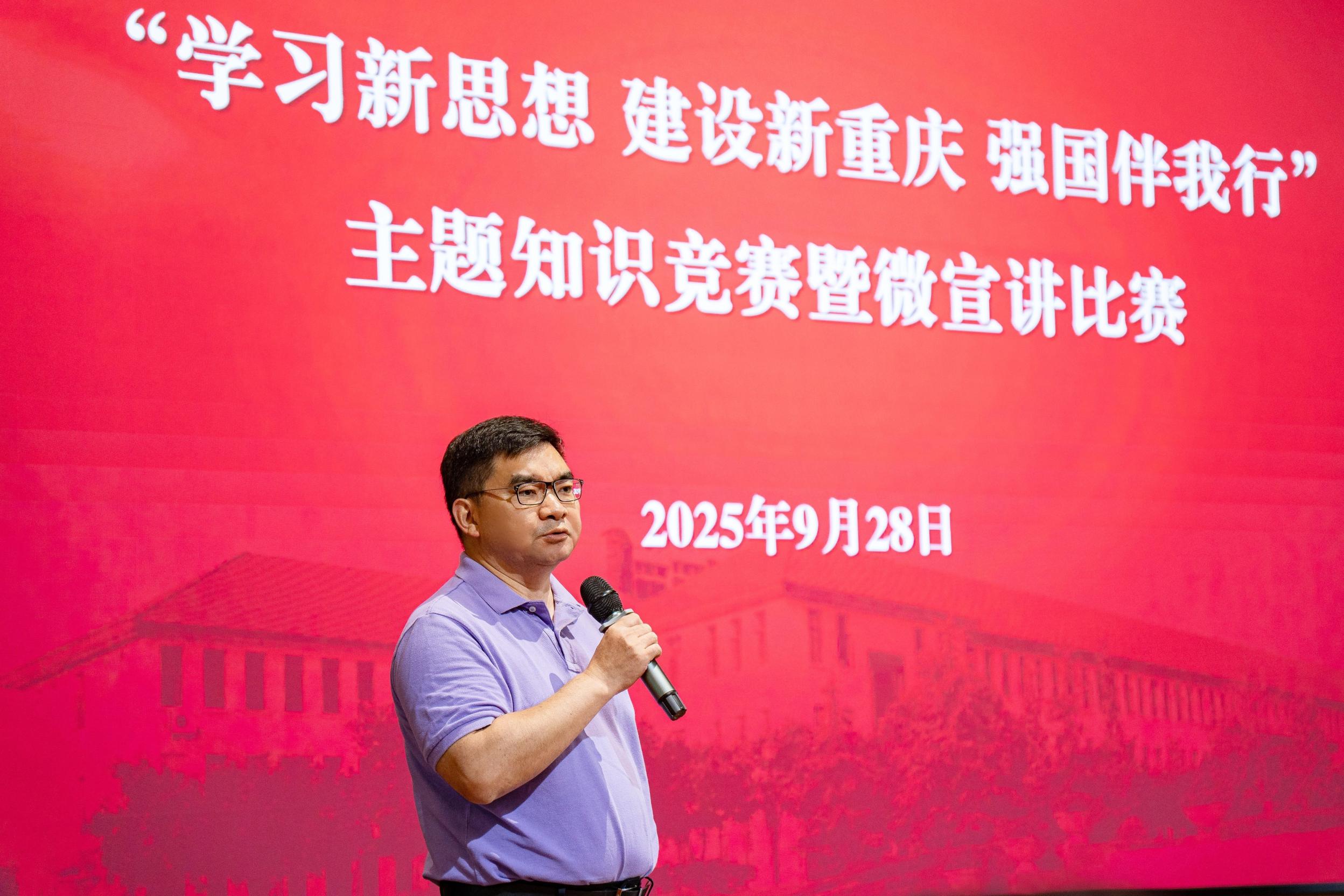 为深入学习贯彻习近平新时代中国特色社会主义思想,贯彻落实习近平总书记视察重庆重要讲话重要指示精神,推动党的创新理论更加深入人心,9月28日下午,华体会官方版网站登录入口在袁家岗校区举行“学习新思想 建设新重庆 强国伴我行”主题知识竞赛暨微宣讲比赛,各直属党组织选拔推荐的24名选手参加比赛。