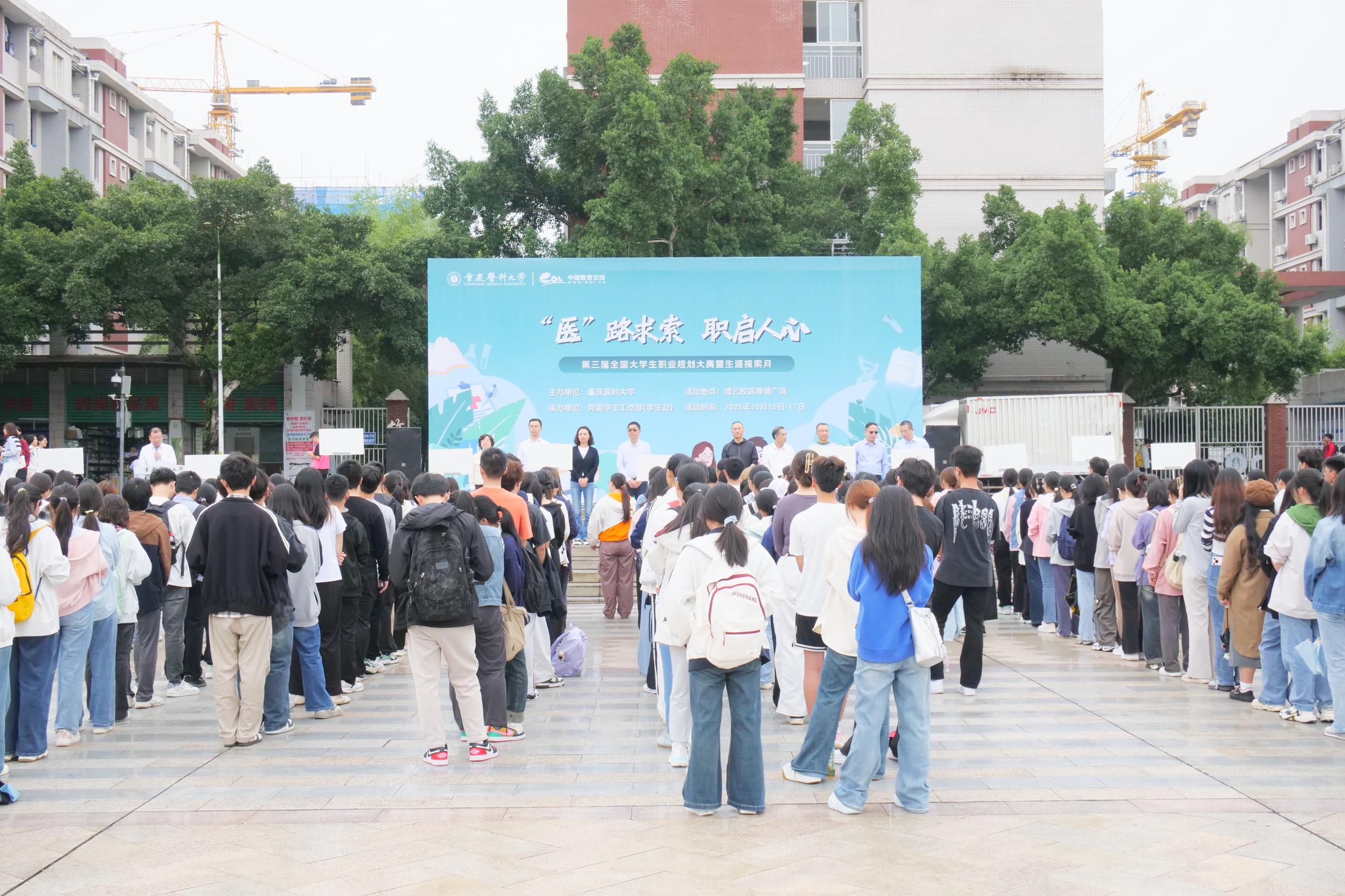 为深入贯彻落实国家关于促进高校毕业生高质量充分就业的决策部署,10月15日,我校在缙云校区厚德广场举行“‘医’路求索 职启人心”第三届全国大学生职业规划大赛暨生涯探索月启动仪式。副校长邱景富出席仪式并讲话。本次活动旨在以大赛为引擎,构建全员参与、全程引导、全方位赋能的生涯教育格局,全力服务学生成长成才与高质量充分就业。