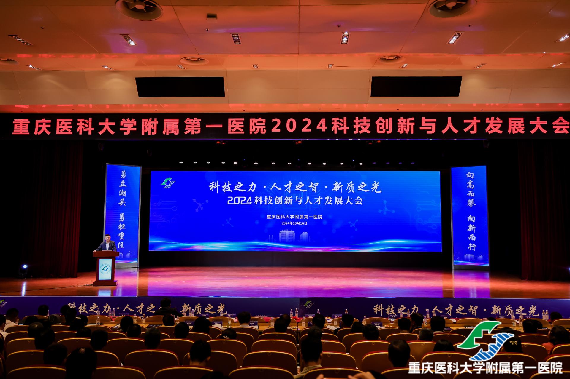 10月16日,附属第一医院2024科技创新与人才发展大会在医院学术报告厅隆重举行。中国工程院院士、全军免疫研究所所长吴玉章,华体会官方版网站登录入口党委书记覃正杰,重庆市卫生健康委副主任赵勇,重庆市人力资源和社会保障局副局长胡京,重庆市科学技术局党委委员陈炳才,重庆市委组织部人才处处长陈勇等领导出席大会。附属第一医院全体院领导、临床及职能部门负责人、科技工作者代表等700余人参加大会。