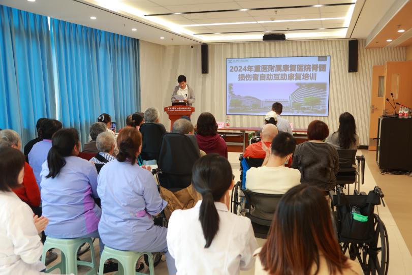 为进一步满足残疾人康复服务需求,创新残疾人康复服务模式,提升残疾人康复服务质量,11月5日,附属康复医院在大渡口院区开展了2024年脊髓损伤者自助互助康复培训。医院康复医学科医师、康复治疗师从脊髓损伤理论知识和脊髓损伤者康复训练等方面进行专业授课,并现场进行简单的康复训练方法,通过培训传递坚强勇敢、顽强拼搏、永不言弃的精神,鼓励伤友实现从受助到自助再到助人的蜕变,帮助更多伤友享受新时代的发展成果。