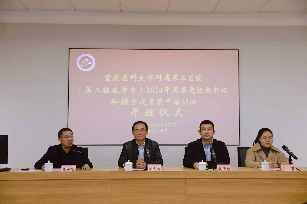 开班仪式上,巴中市委党校(四川大巴山干部学院)副校(院)长王全明致欢迎辞并授班旗;医院党委书记刘志远作开班动员讲话;院党委委员、党办主任裴仲琦接班旗。