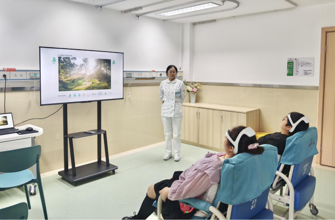 在医院门诊大厅、候诊室等地,睡眠心身医学中心医护人员通过情景化问答、睡眠卫生示范、现场互动等形式,生动演绎了睡眠卫生、睡眠与心理健康等健康知识,将健康睡眠的理念普及到更广泛的市民群体中。同时,睡眠心身医学中心向公众开放多导睡眠监测室等地,医护人员向前来参观的市民介绍中心睡眠监测与治疗的先进技术,带领参观市民体验放松训练。“零距离”的沉浸式体验,帮助大家科学认识睡眠心理疾病的诊疗过程,为睡眠障碍治疗提供了新选择。