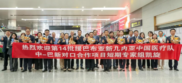 10月18日晚,由附属永川医院牵头组建的第14批援巴布亚新几内亚(以下简称“巴新”)中国医疗队完成为期一年的援外医疗任务,平安返回重庆。重庆市卫生健康委副主任邢雅翕、市卫生健康委国际处处长杨彬、医院党委书记刘利、院长蒋迎九及相关处室和科室负责人前往机场迎接。
