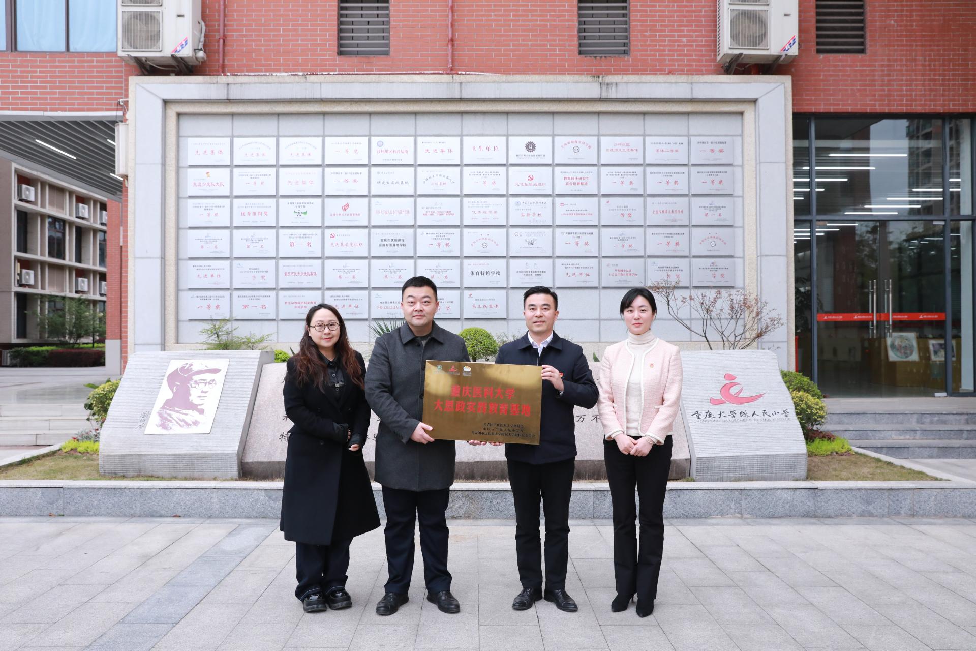 华体会官方版网站登录入口团委、附属大学城医院与重庆大学城人民小华体会官方版网站登录入口共建大思政实践教育基地,重庆大学城人民小华体会官方版网站登录入口党总支书记潘德梁、副校长谢谚,附属大学城医院党委委员、副院长刘刚,华体会官方版网站登录入口团委书记张巧丹等共同见证基地授牌。