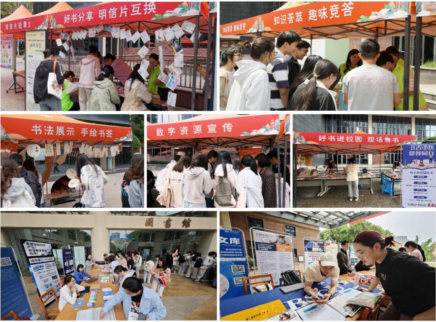 本次活动以“线上+线下”并行的模式开展,图书馆和校团委精心策划了六大特色主题现场活动,包括好书分享、知识竞答、书法展示、图书交换、数字资源宣传、现场售书。活动形式丰富多样,内容生动有趣,师生们积极参与现场互动,真正实现了“以书为媒,以文会友”的育人目标,打造了一场多维立体、沉浸互动的文化活动。