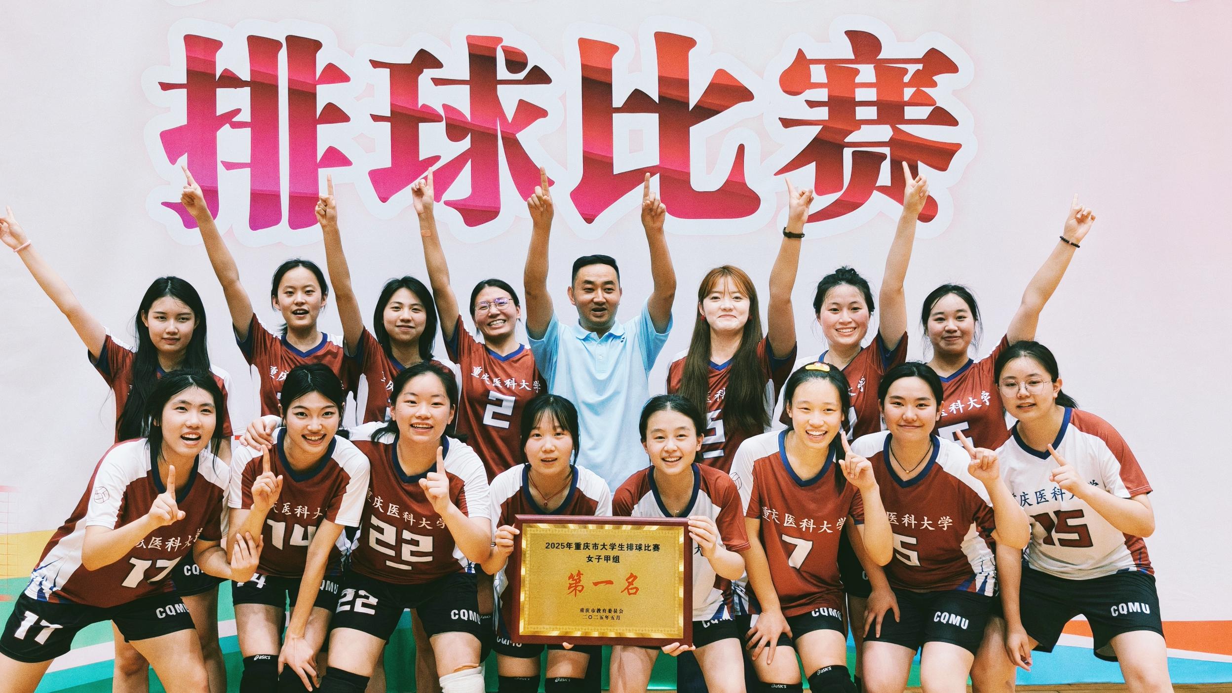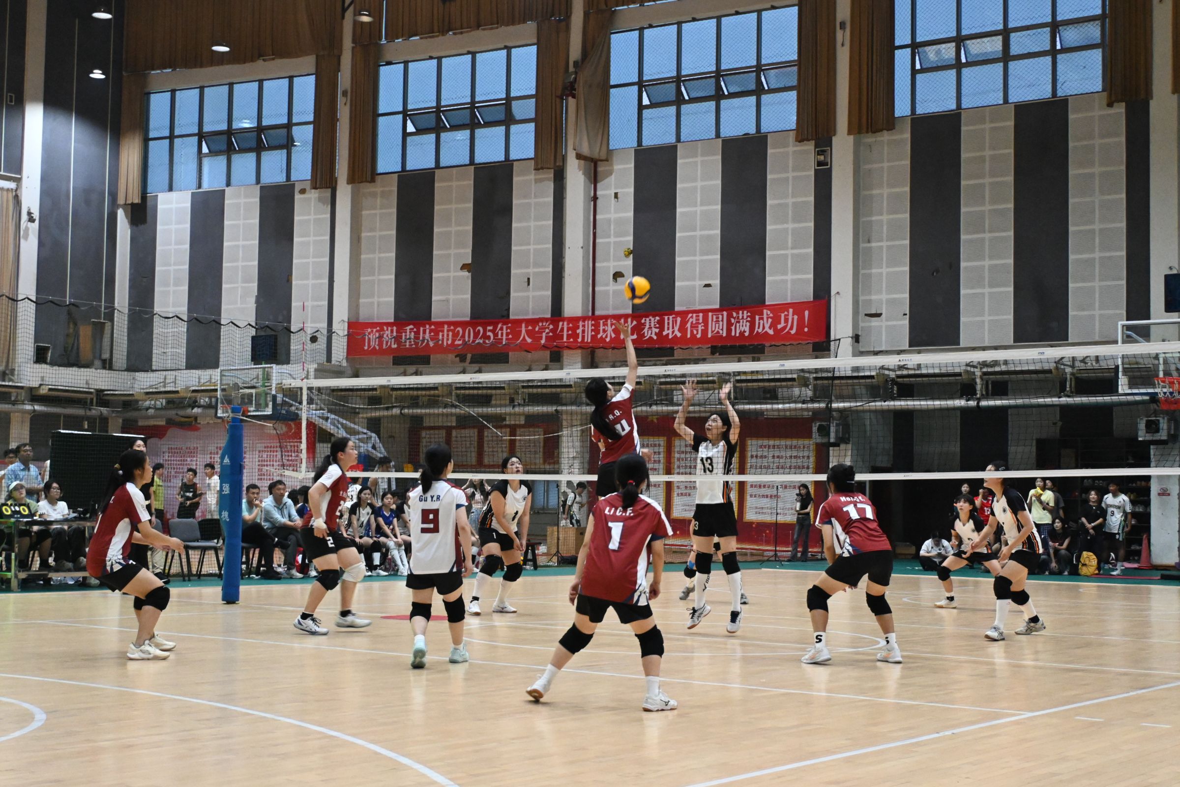 2025年重庆市大学生排球比赛于5月13日至17日在西南政法大学举行,比赛由市教委主办,西南政法大学承办,共36所高校、62支队伍、1000多名运动员参加本次比赛。我校女子排球队在教练邓洪波老师的指导下,以五战全胜的成绩成功夺取甲组冠军。