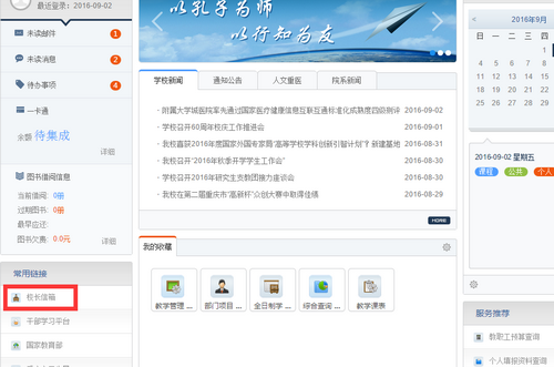 2、在左侧“常用链接”下点击“校长信箱”实现访问。