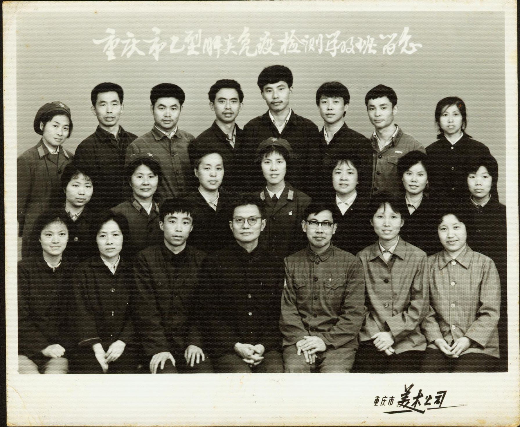 重庆市乙型肝炎免疫检测学习班留影(前排中间为张定凤)
